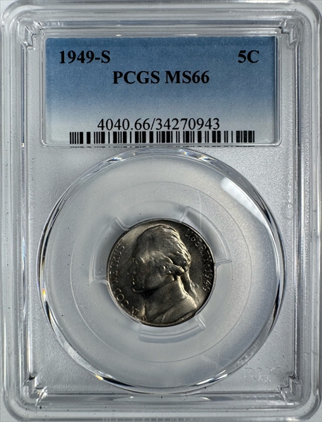 1949-S 5C MS66 Certification #34270943, PCGS #4040