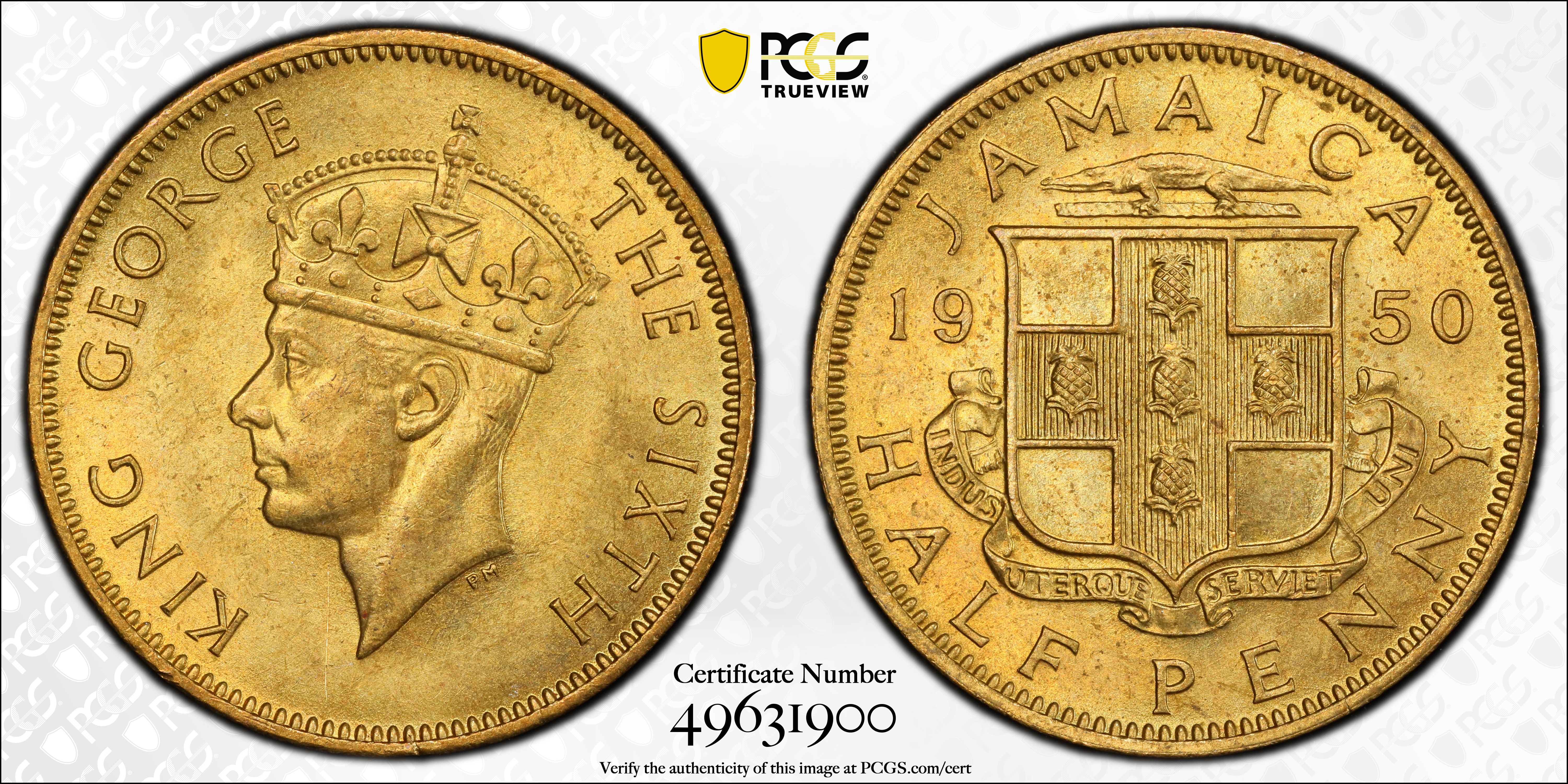 1950 1/2D MS65 Certification #49631900, PCGS #423314