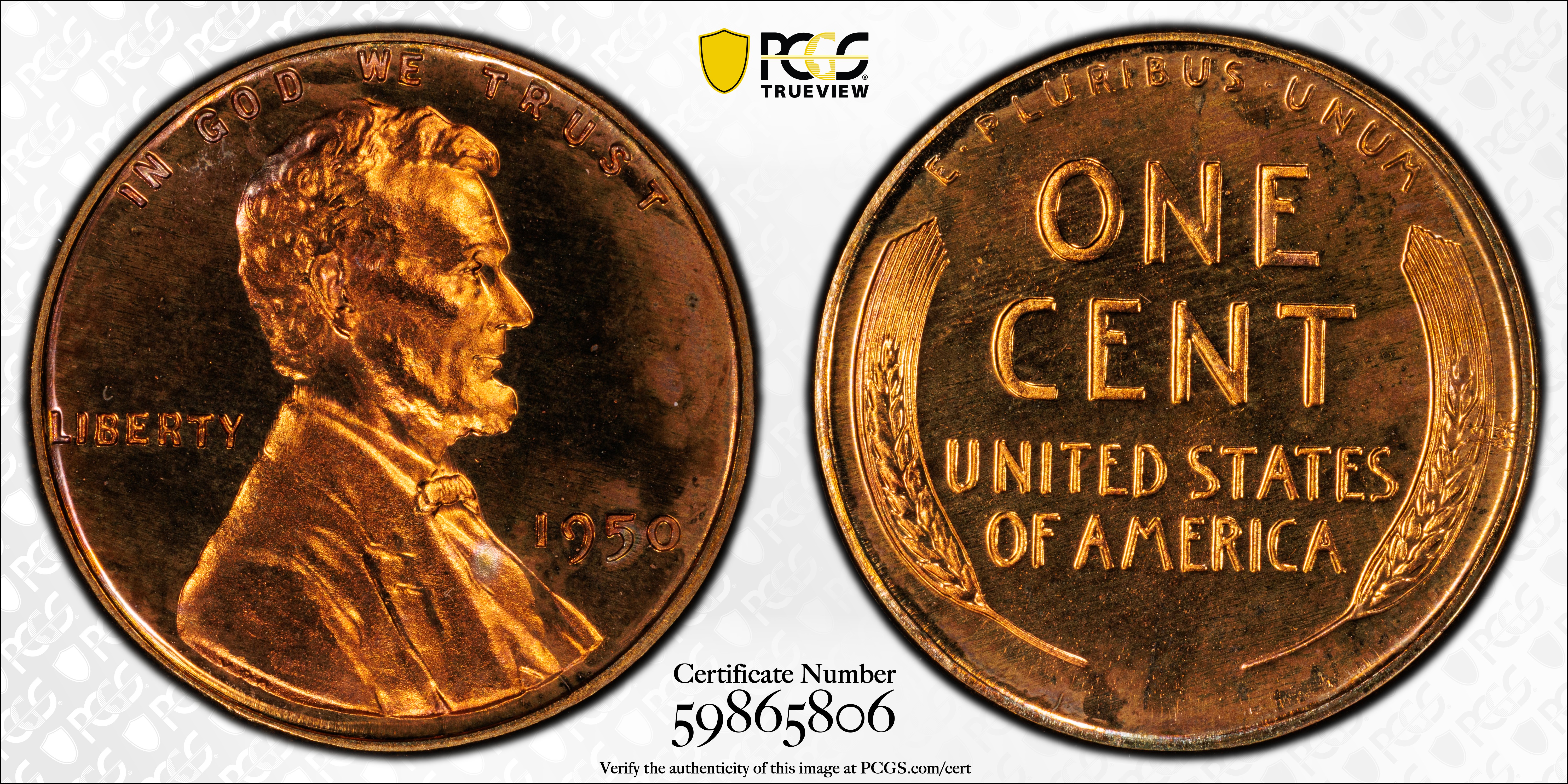 1950 1C, DCAM PR65DCAM Certification #59865806, PCGS #93359