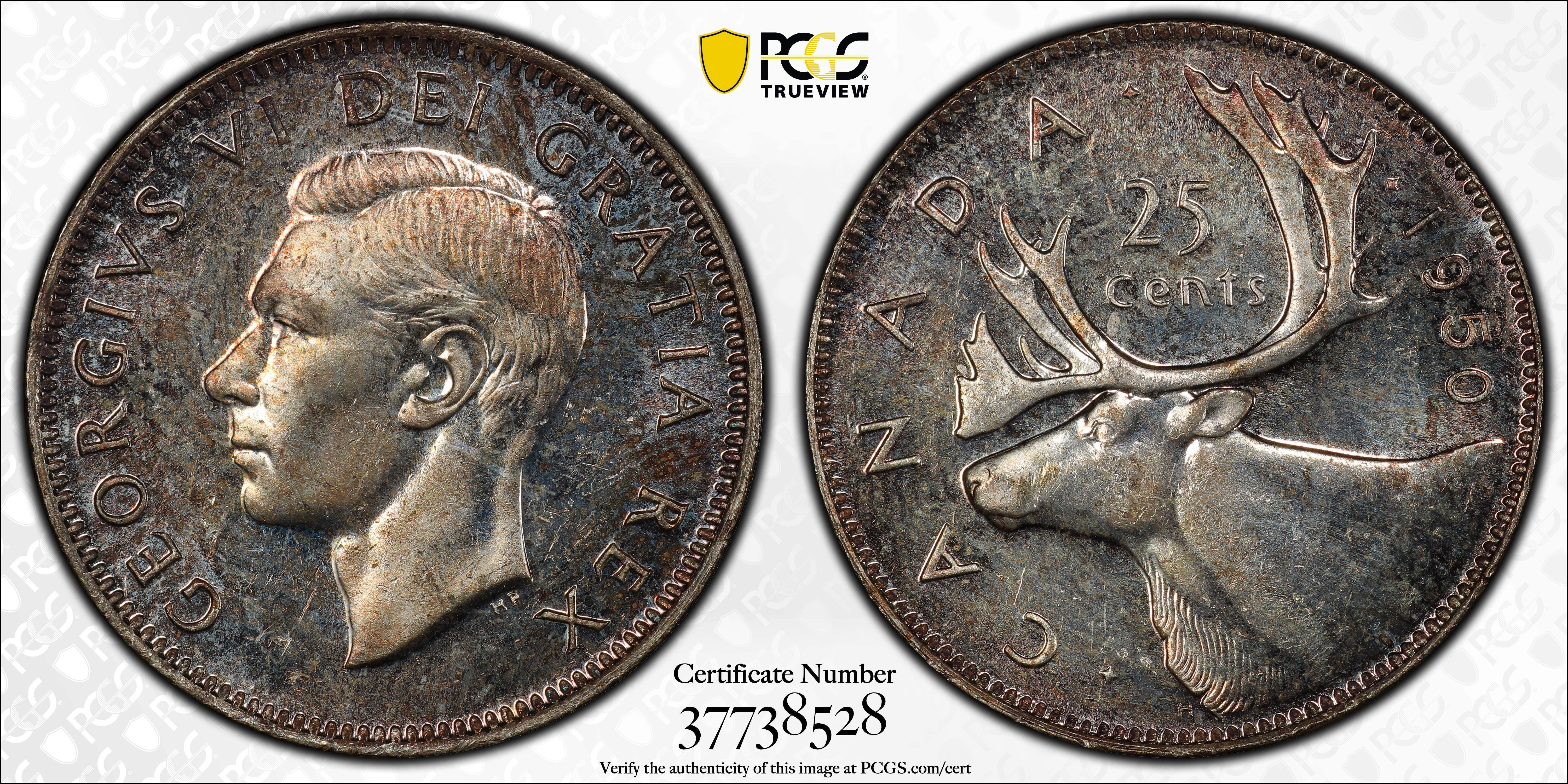 1950 25C MS64 Certification #37738528, PCGS #31865