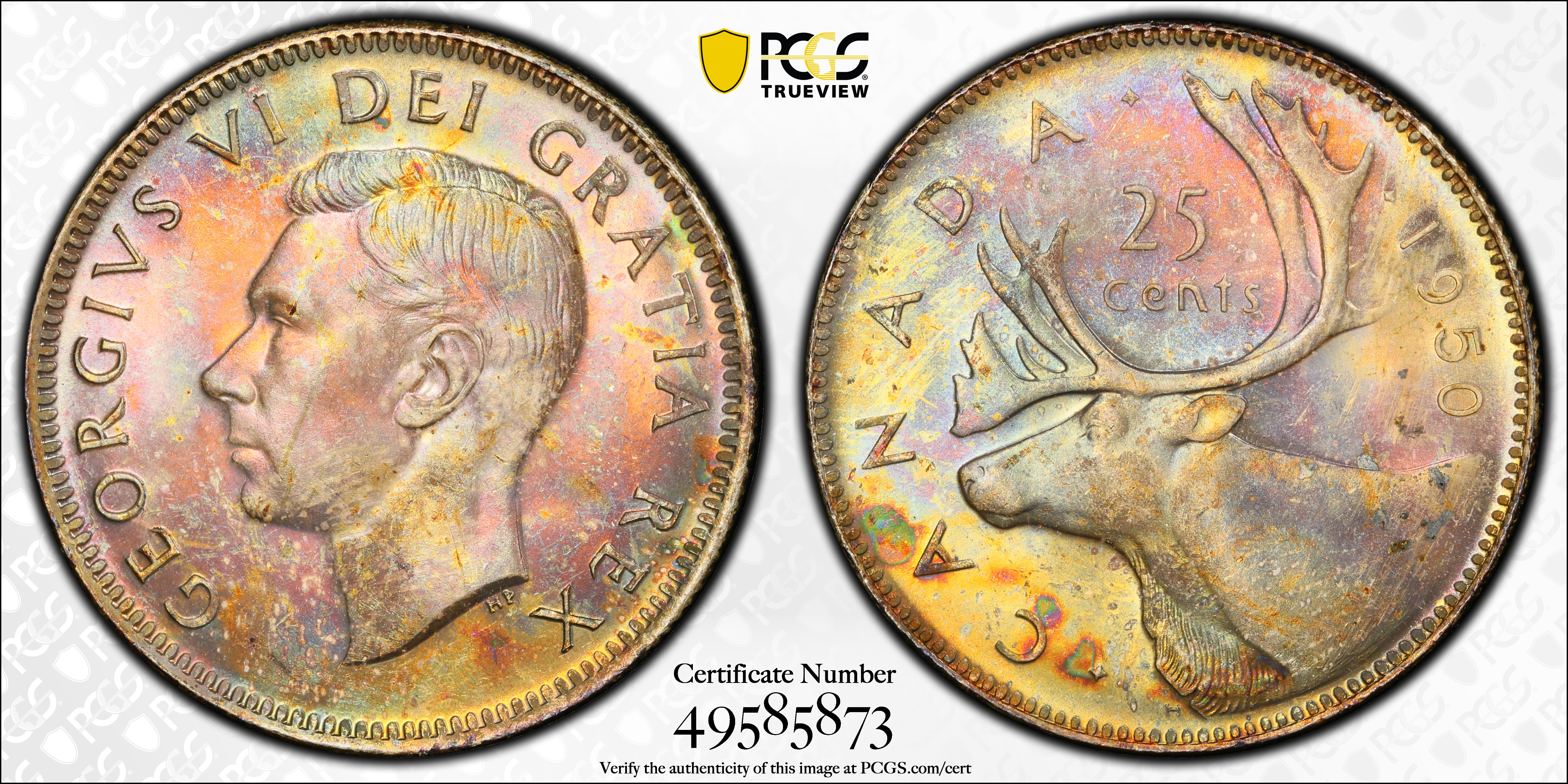 1950 25C MS64 Certification #49585873, PCGS #31865