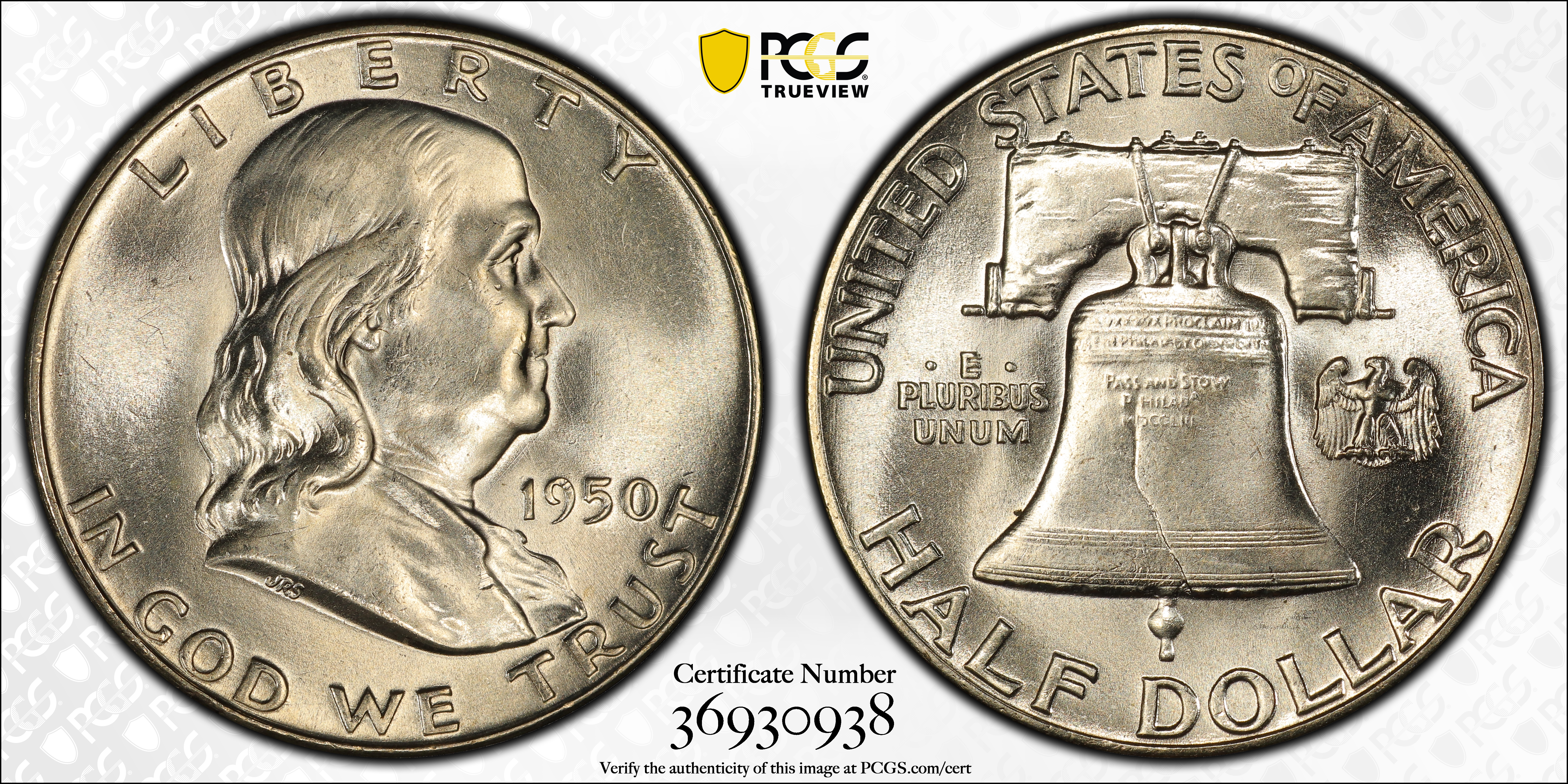 1950 50C, FBL MS65FBL Certification #36930938, PCGS #86656
