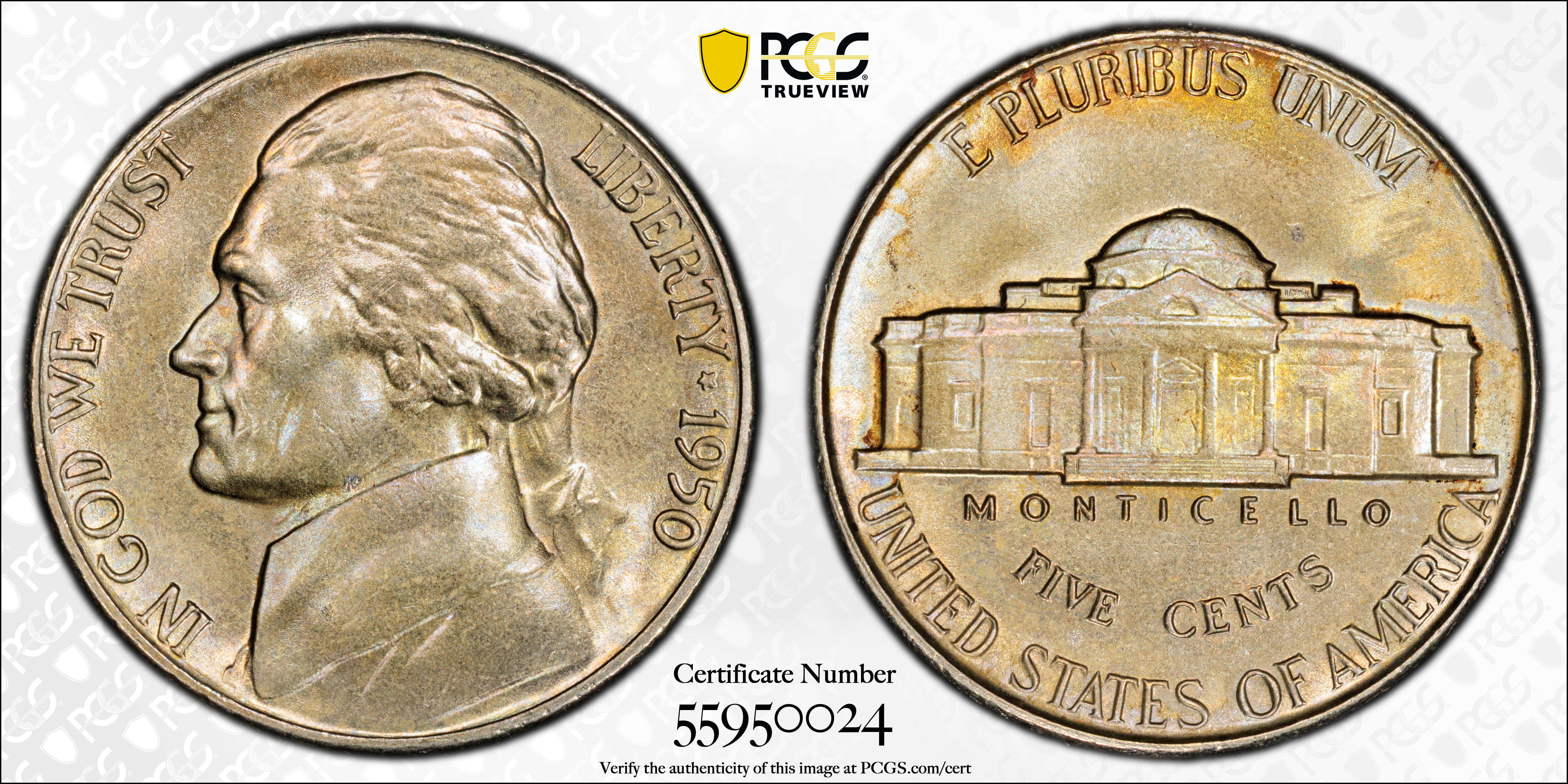 1950 5C, FS MS67FS Certification #55950024, PCGS #84041