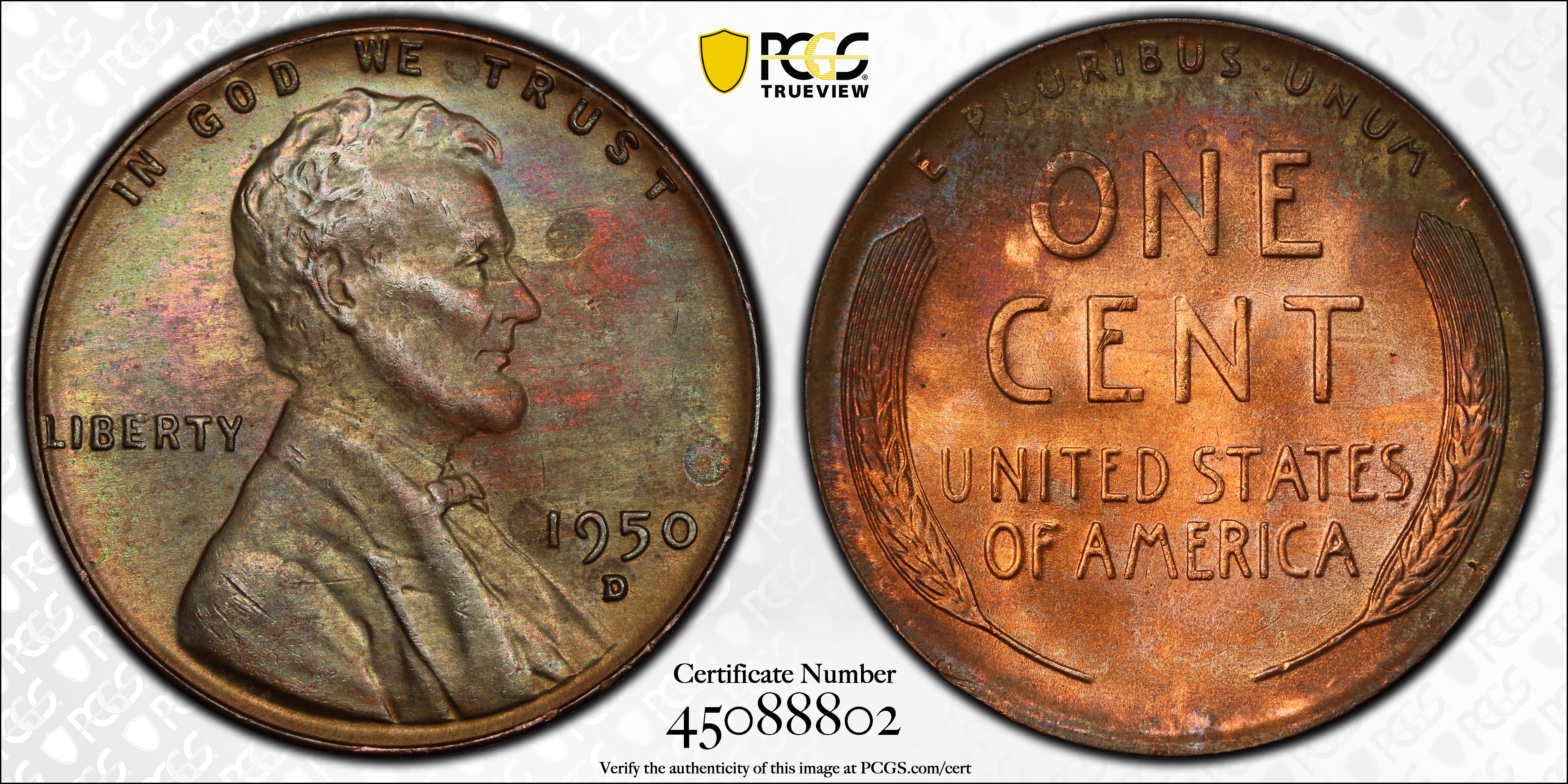 1950-D 1C, BN MS64BN Certification #45088802, PCGS #2780