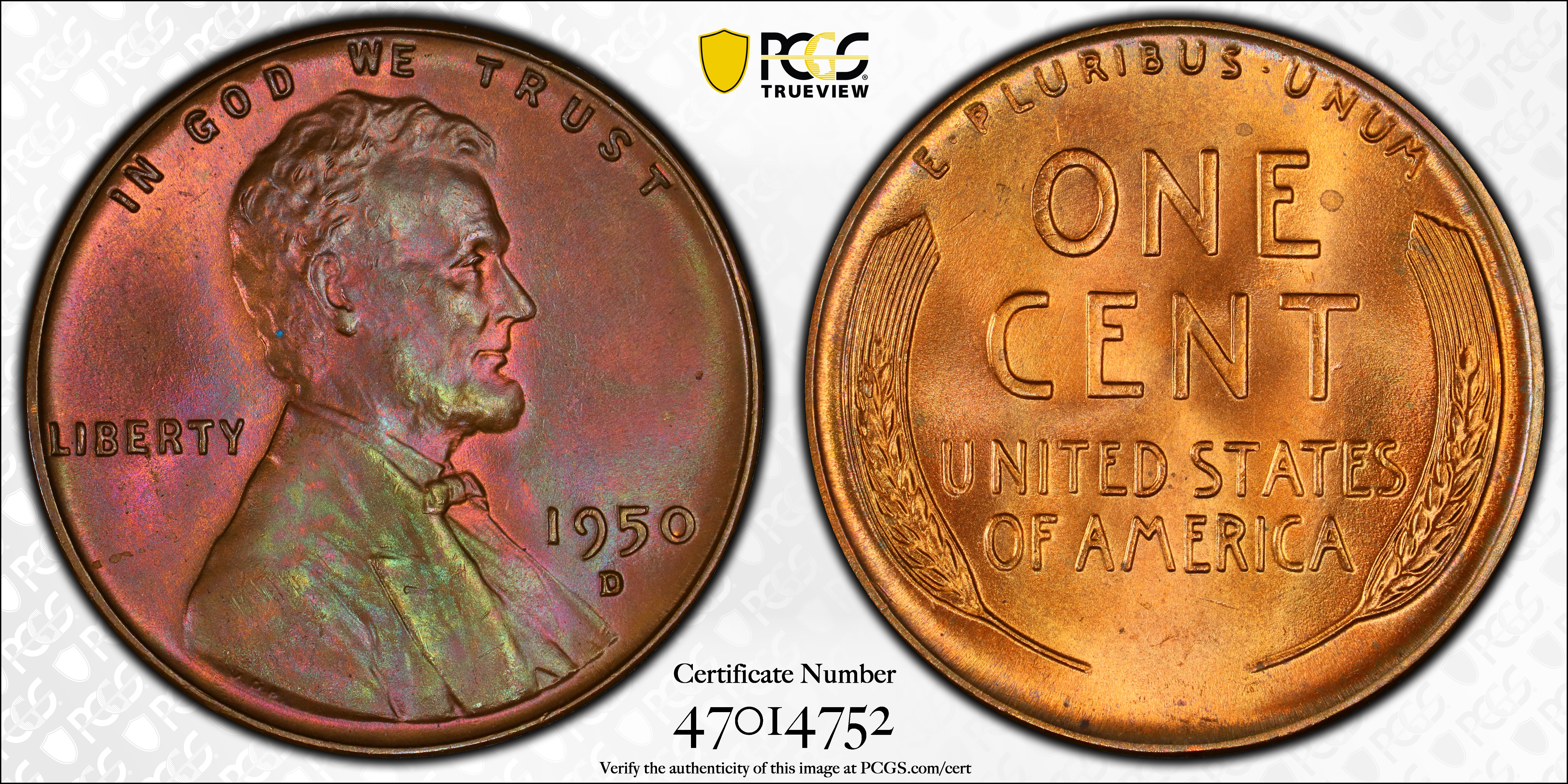 1950-D 1C, RB MS66RB Certification #47014752, PCGS #2781