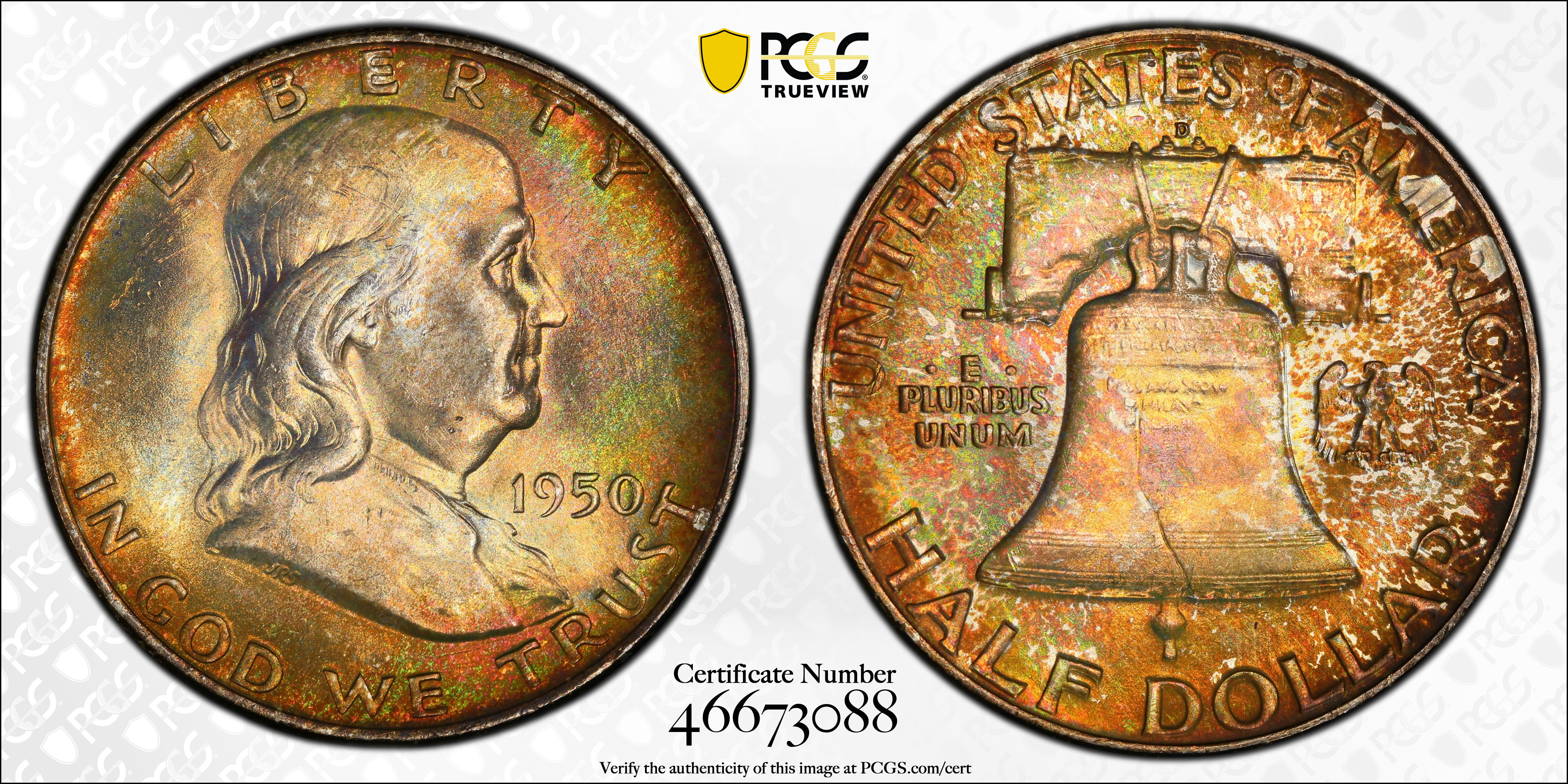 1950-D 50C, FBL MS67FBL Certification #46673088, PCGS #86657