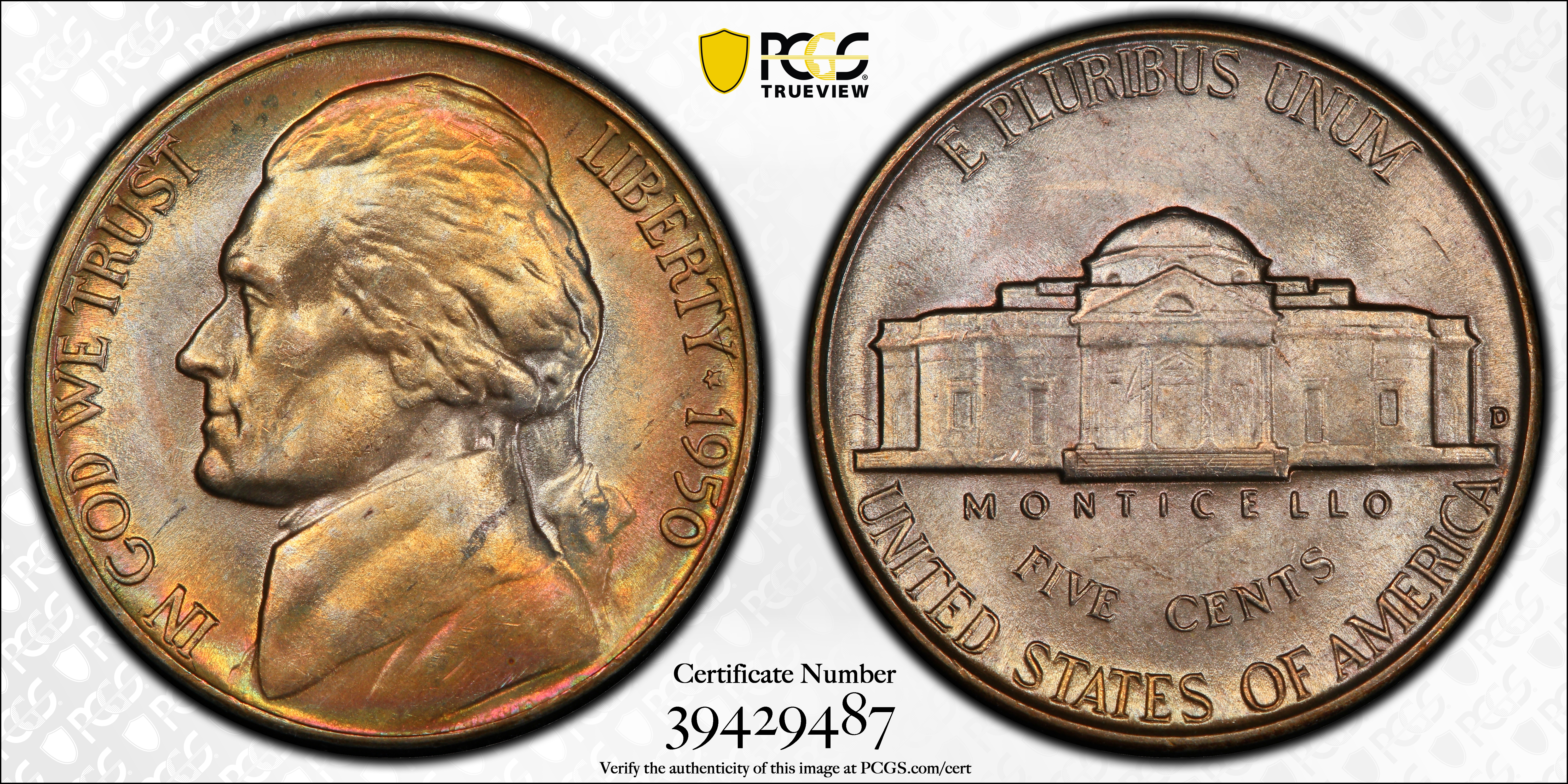 1950-D 5C MS66+ Certification #39429487, PCGS #4042
