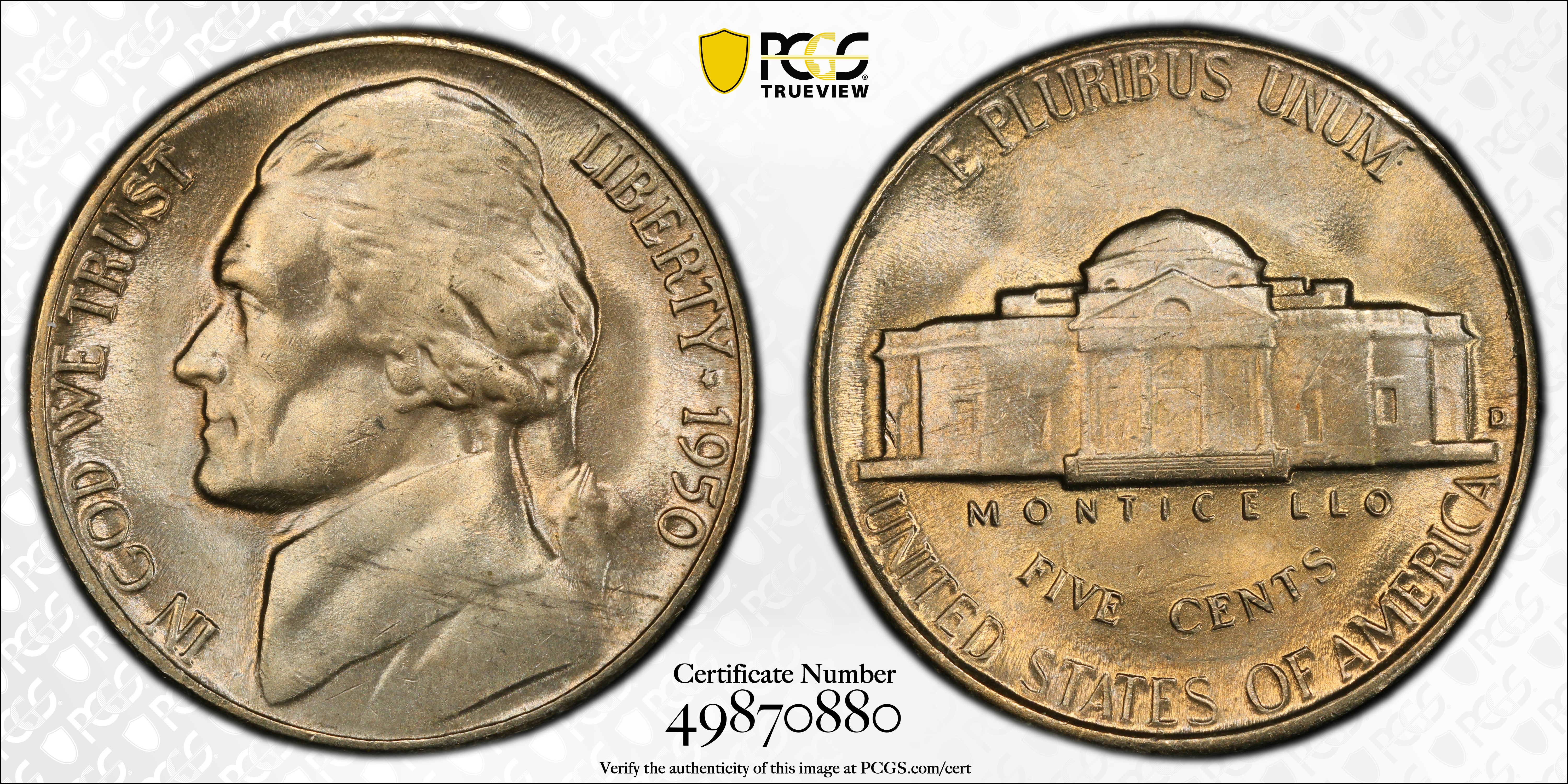 1950-D 5C MS64 Certification #49870880, PCGS #4042