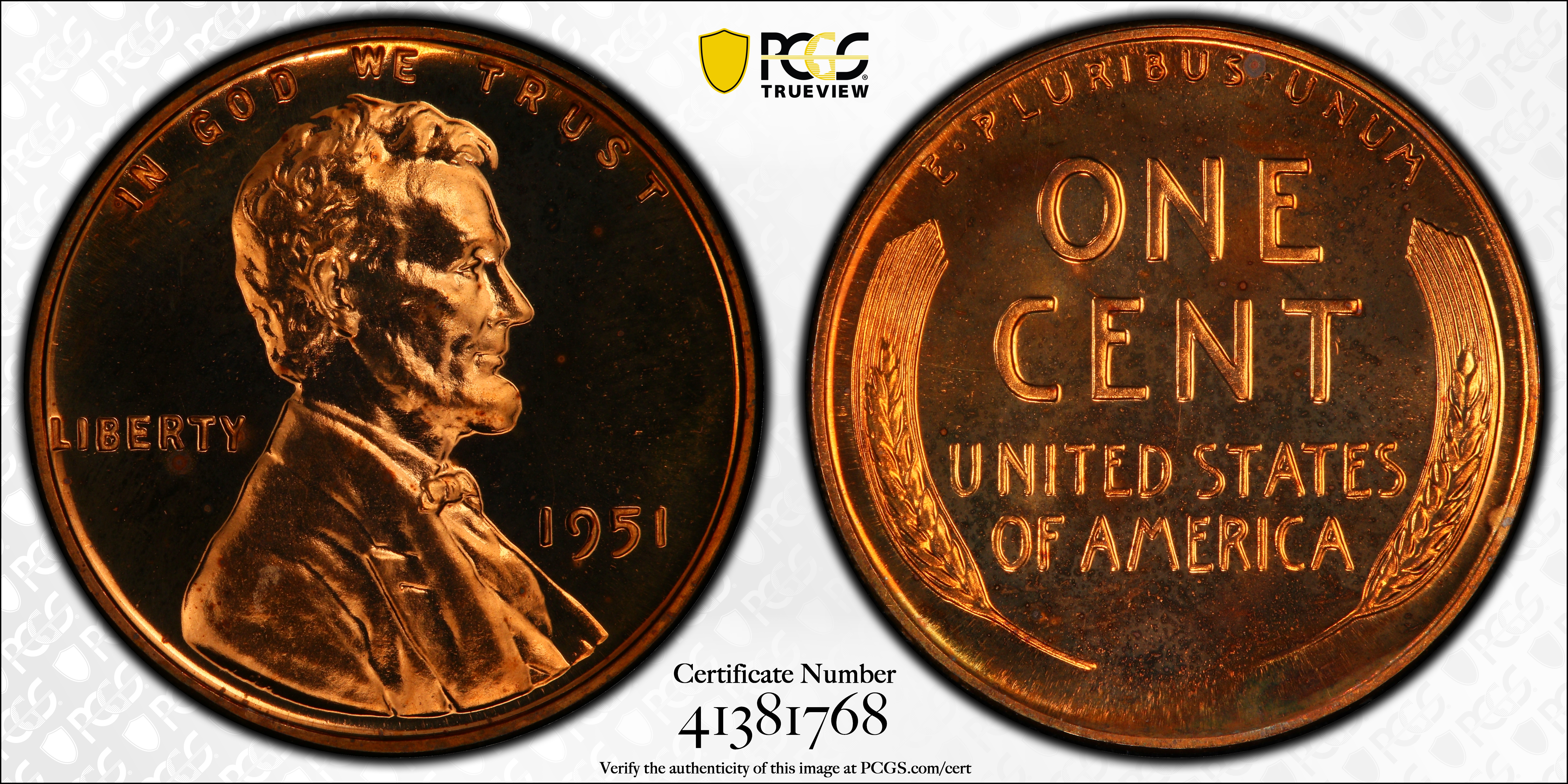 1951 1C, RD PR66RD Certification #41381768, PCGS #3362