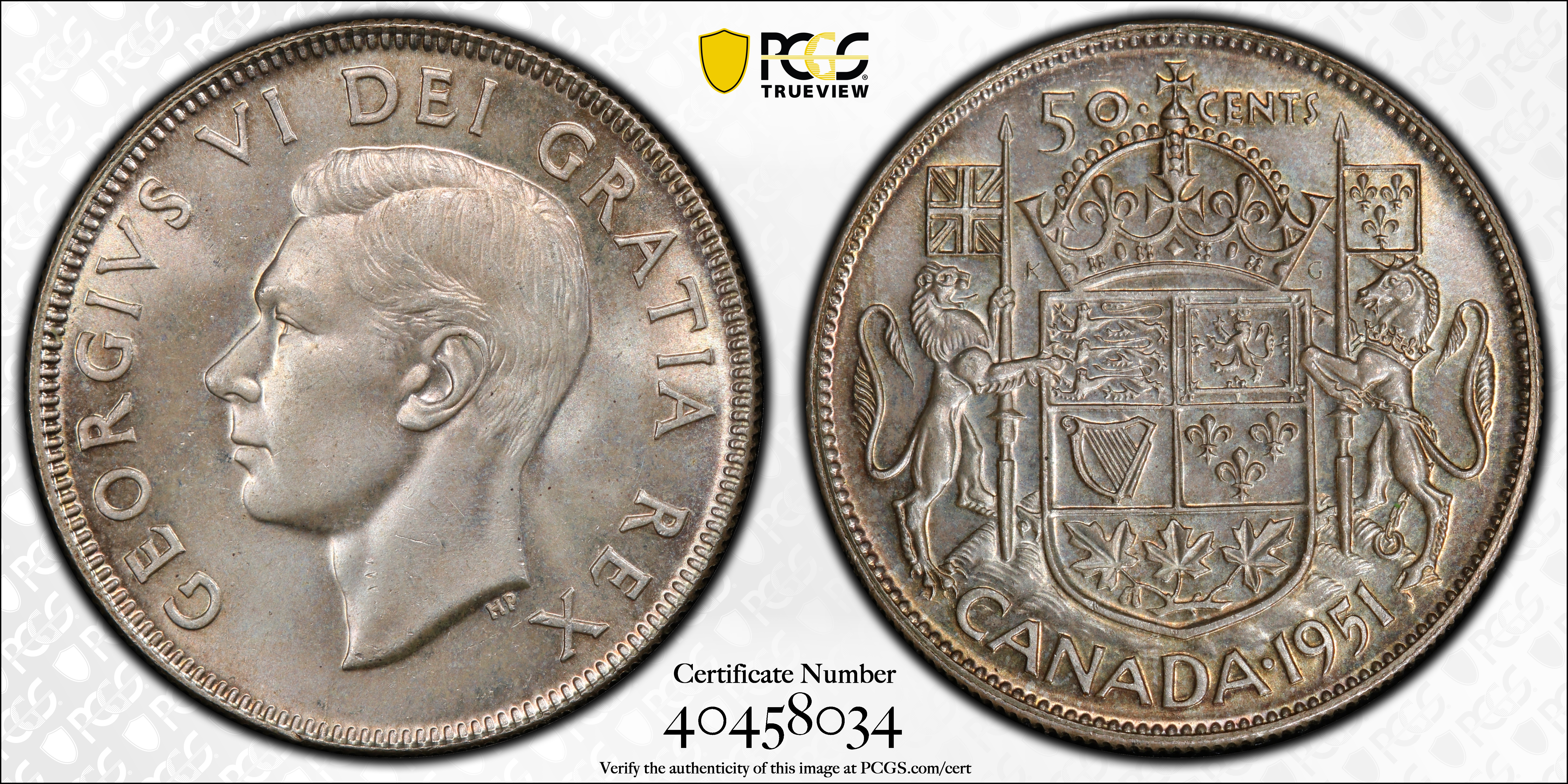 1951 50C MS64 Certification #40458034, PCGS #32202