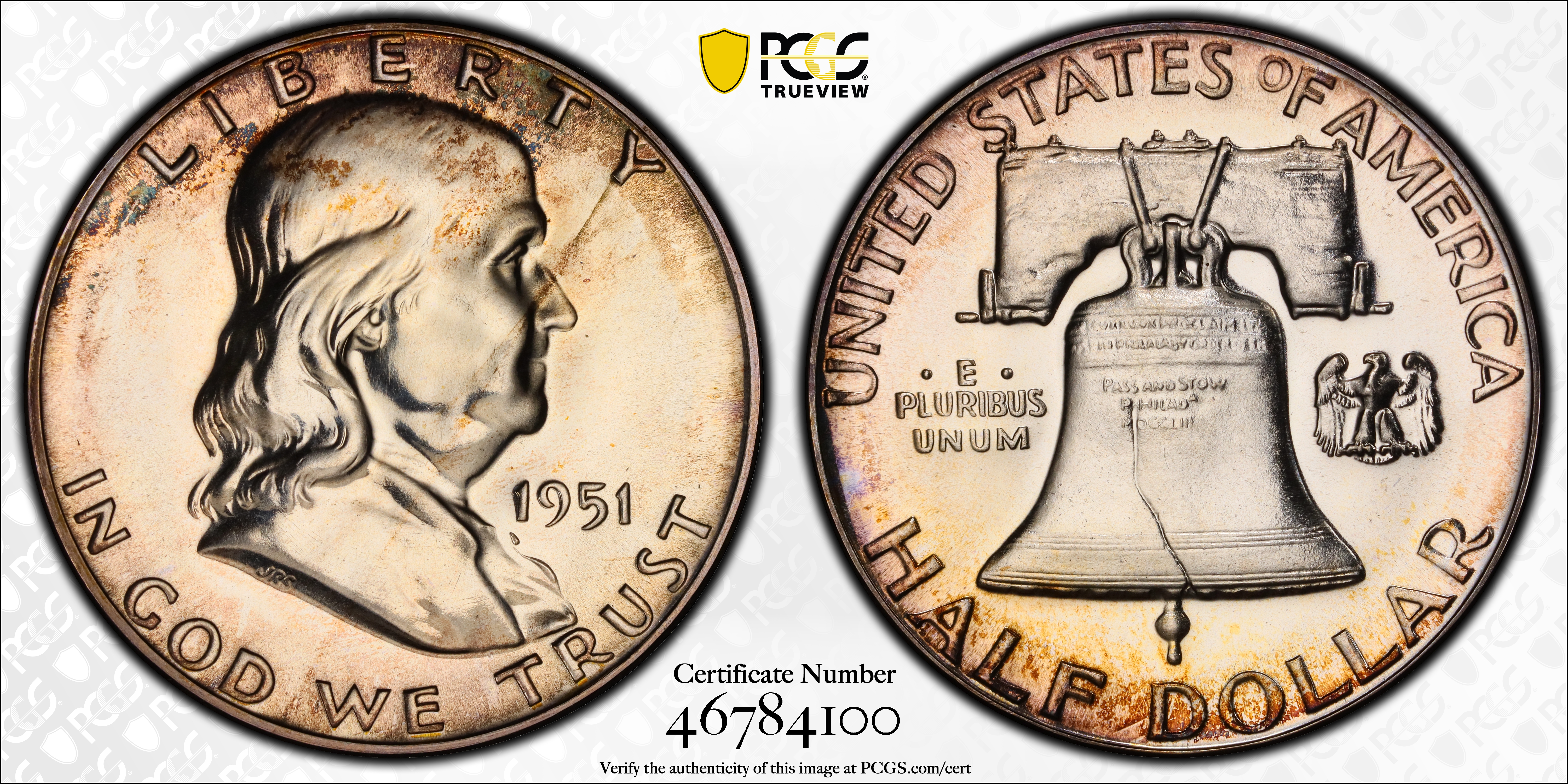 The 1951 Proof Franklin Half Dollar has the second lowest mintage in the series. Most examples that were struck still exist since Proof coins have always carried a premium, therefore, they have a much larger survival rate than circulation strike coins. Most 1951 Proof Franklin Half Dollars that still exist are raw with most of them being in PR60-PR64 condition. Examples in PR65 condition and higher are probably already certified. In PR67 they are very scarce with possibly less than 200 examples in existence with no PR68 examples known.