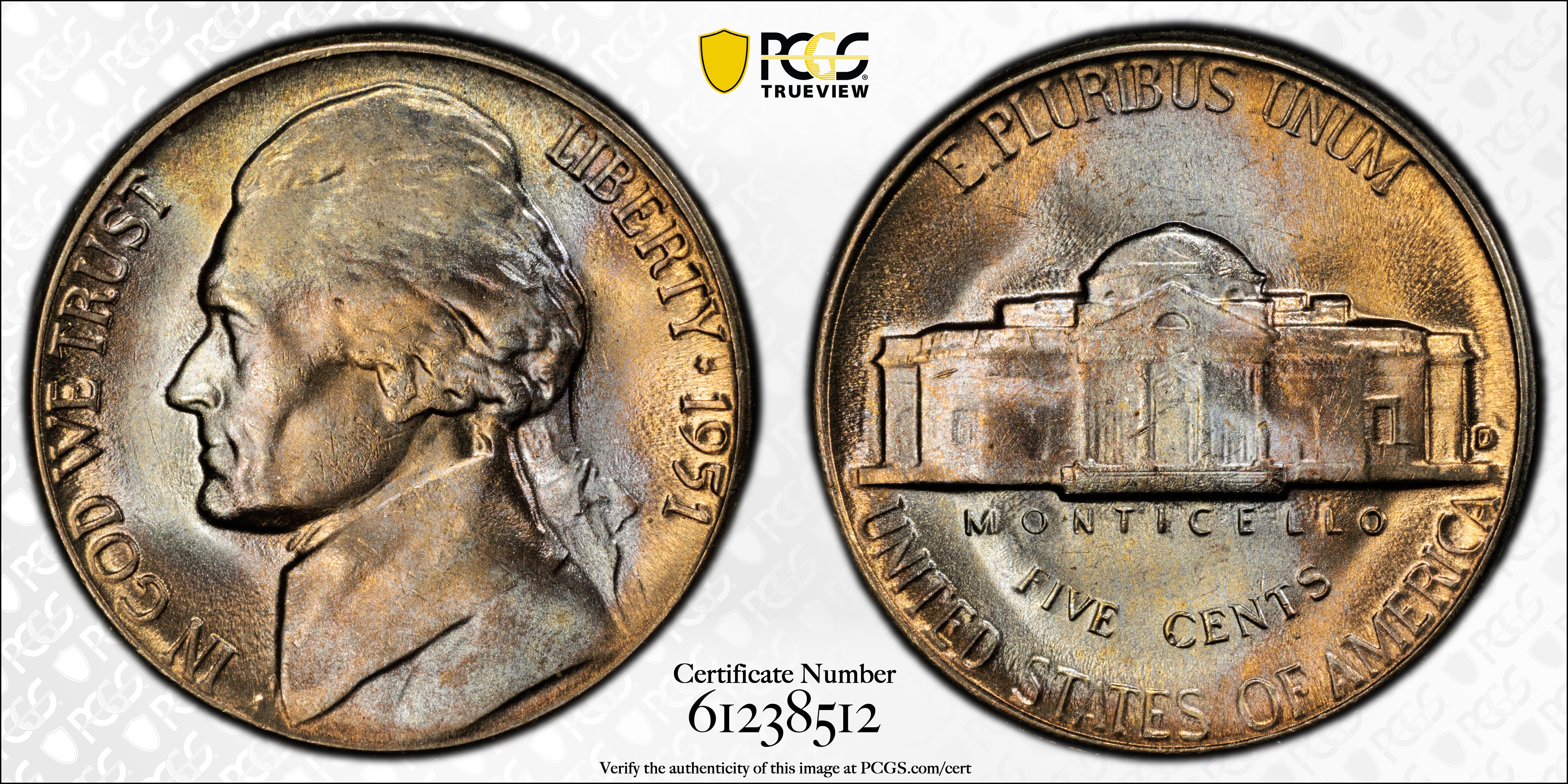 1951-D 5C MS65 Certification #61238512, PCGS #4044