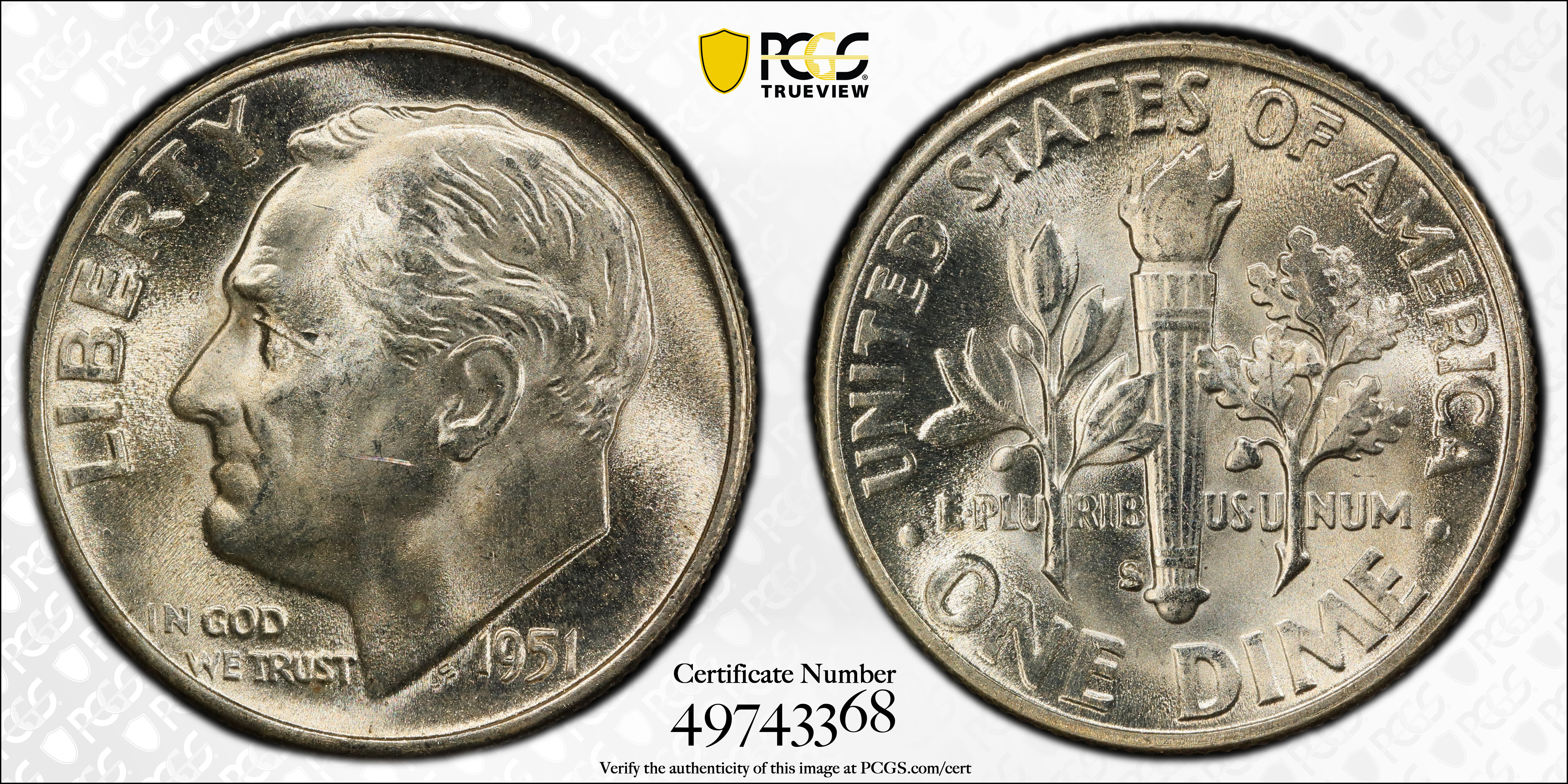1951-S 10C, FB MS64FB Certification #49743368, PCGS #85099