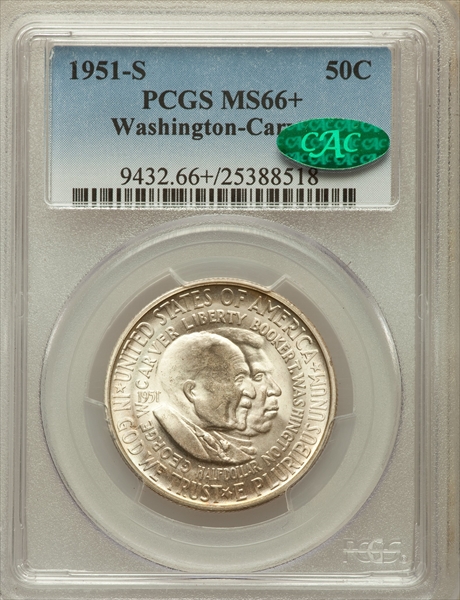 1951-S 50C Washington-Carver MS66+ Certification #25388518, PCGS #9432