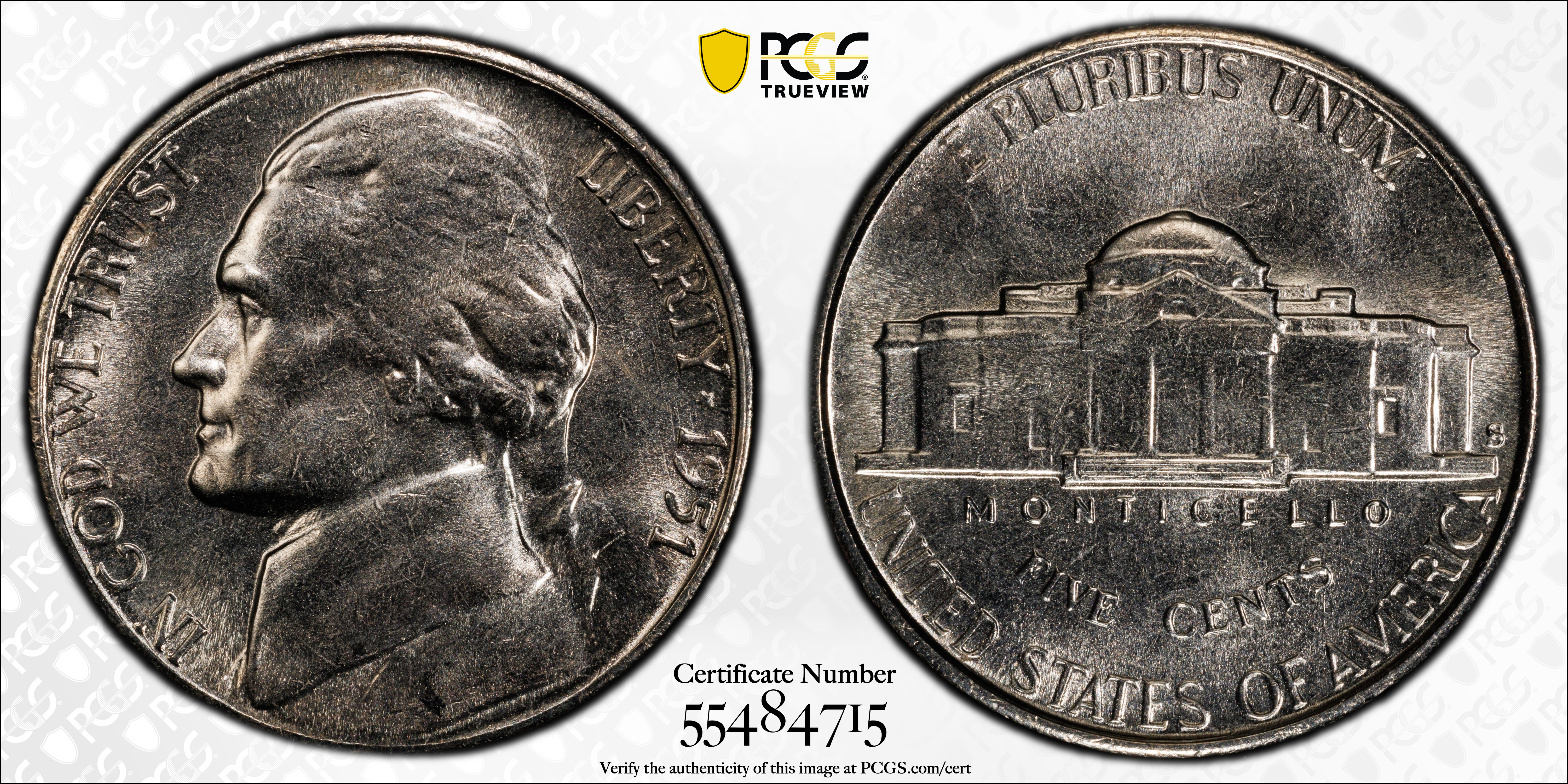 1951-S 5C, FS MS65FS Certification #55484715, PCGS #84045