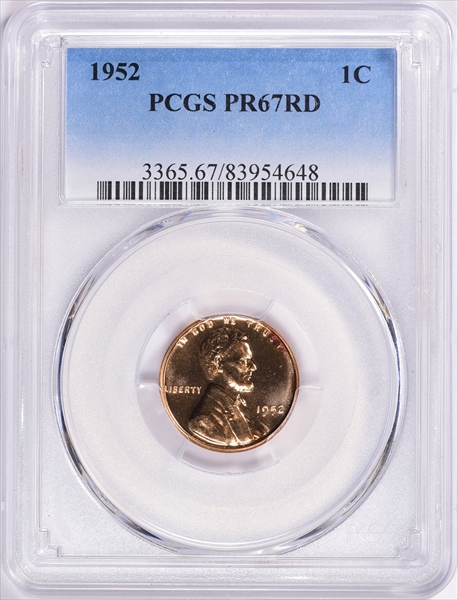 1952 1C, RD PR67RD Certification #83954648, PCGS #3365
