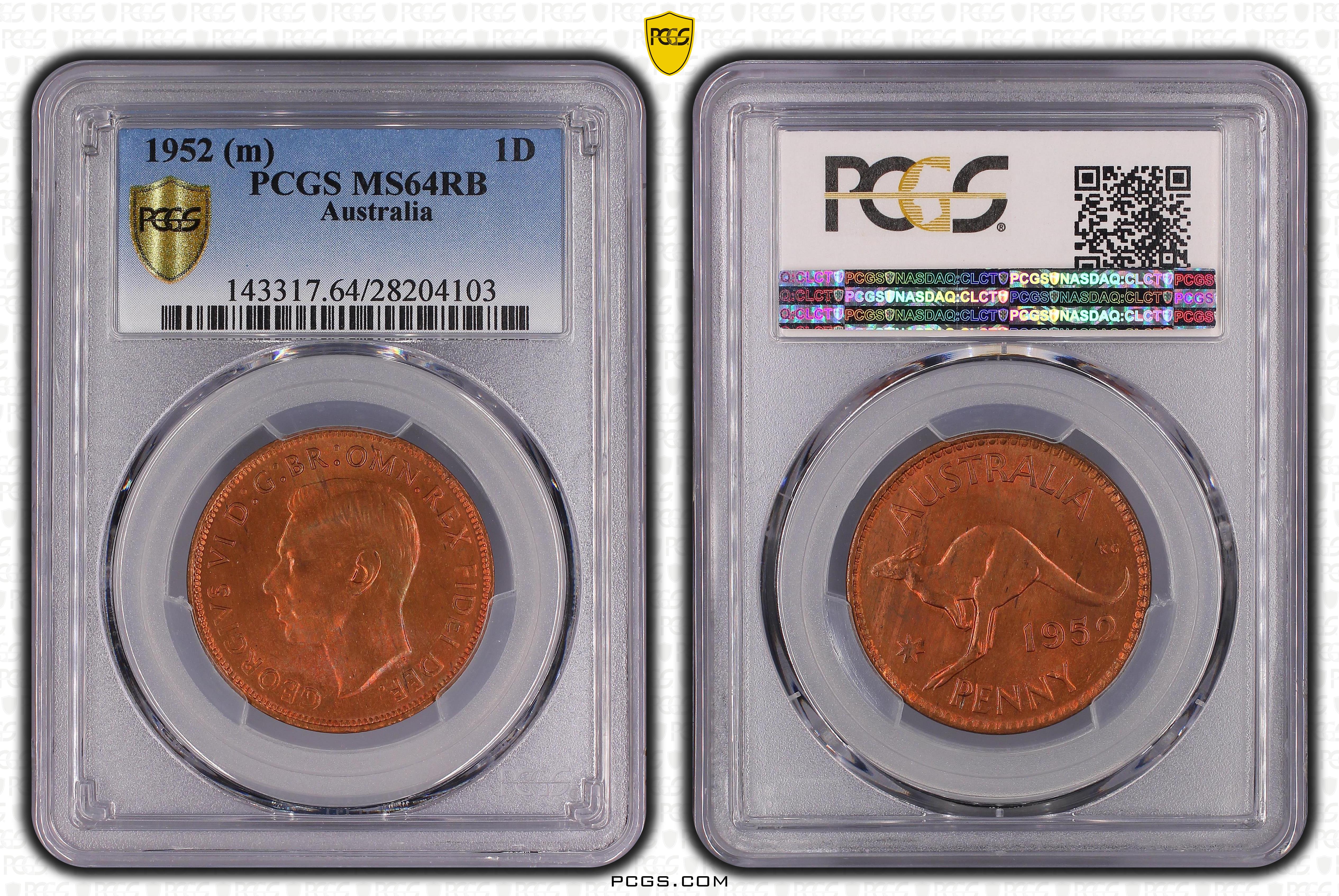 1952 (m) 1D, RB MS64RB Certification #28204103, PCGS #143317