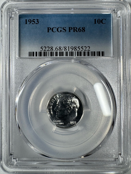 1953 10C PR68 Certification #81985522, PCGS #5228