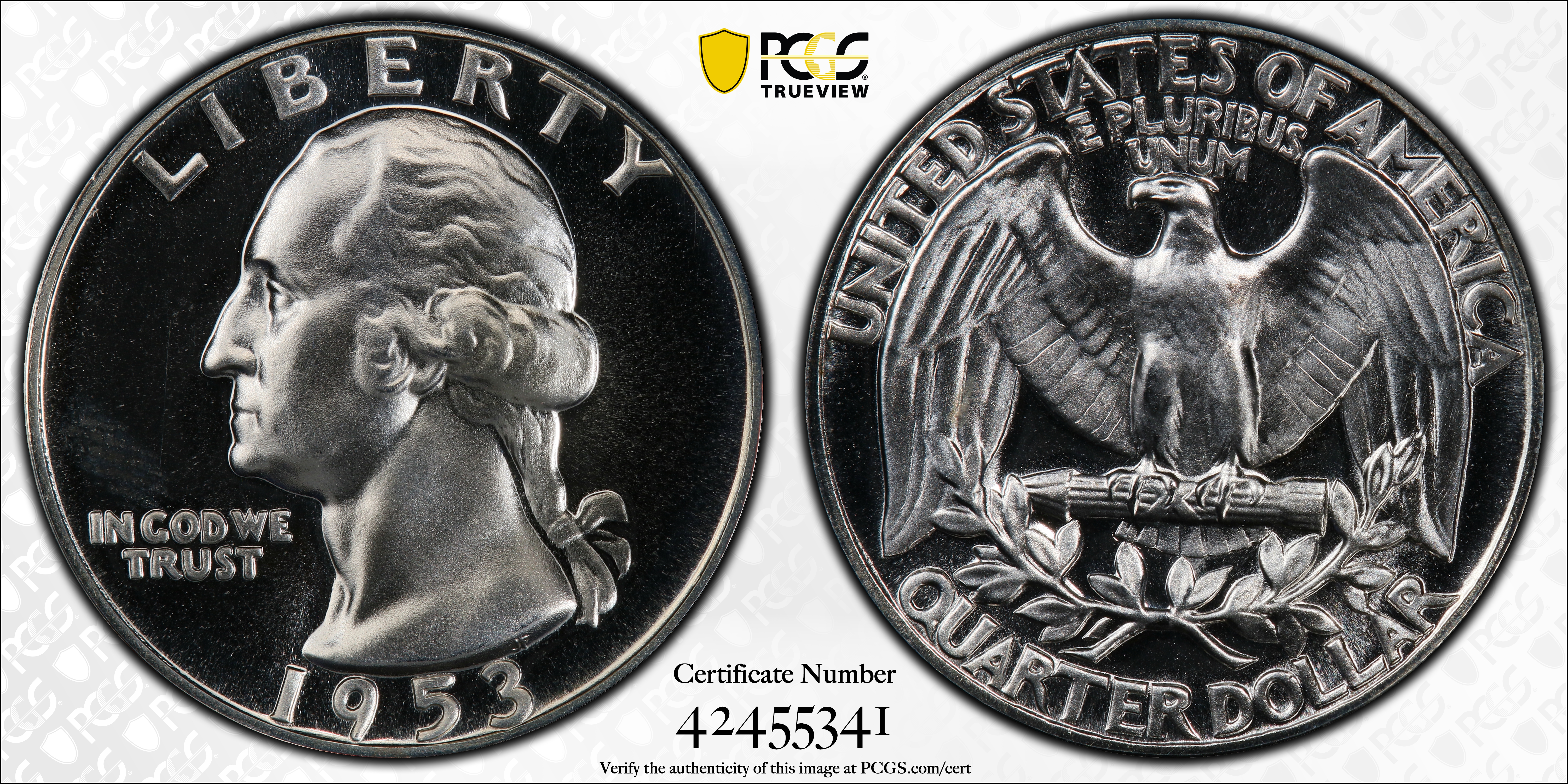 1953 25C, CAM PR68CAM Certification #42455341, PCGS #85985