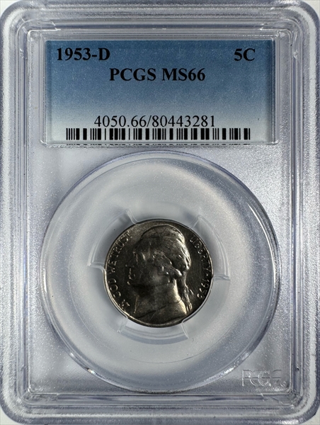 1953-D 5C MS66 Certification #80443281, PCGS #4050