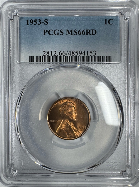1953-S 1C, RD MS66RD Certification #48594153, PCGS #2812