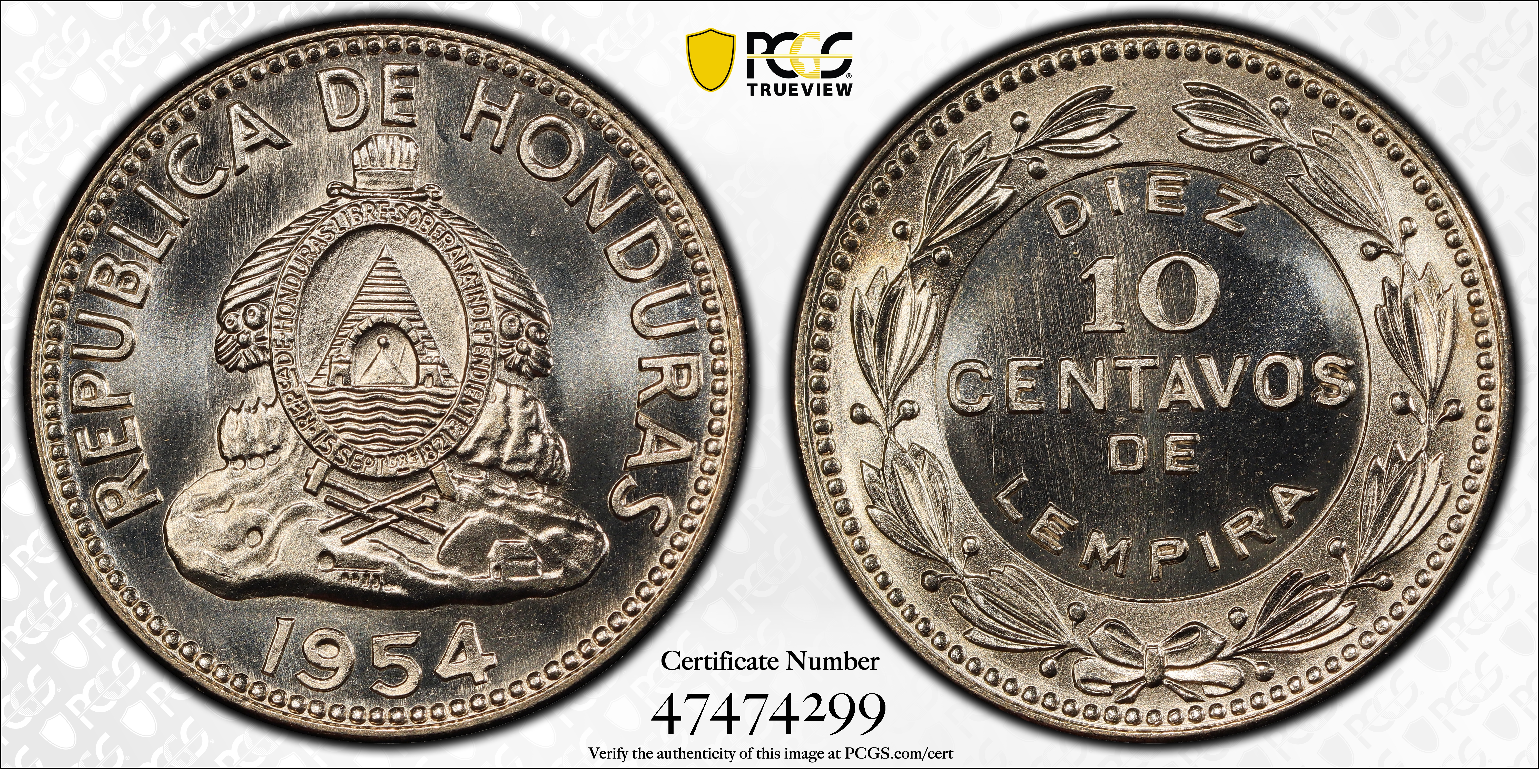 1954 10C MS68 Certification #47474299, PCGS #179413