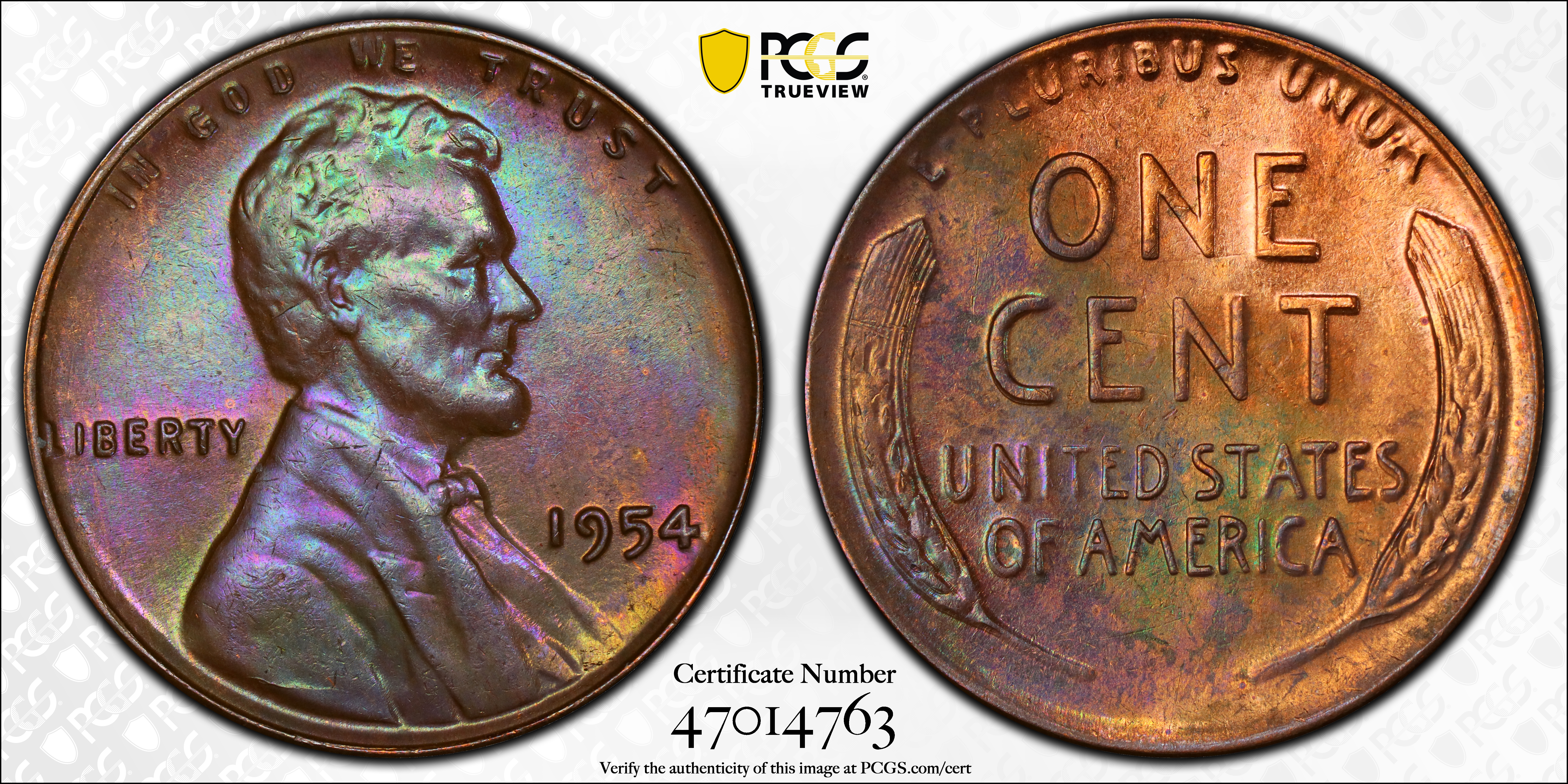 For no apparent reason, 1954-P Lincoln cents display very weak and mushy details. This is one of the reasons why coins in high mint state grades are very difficult to locate.