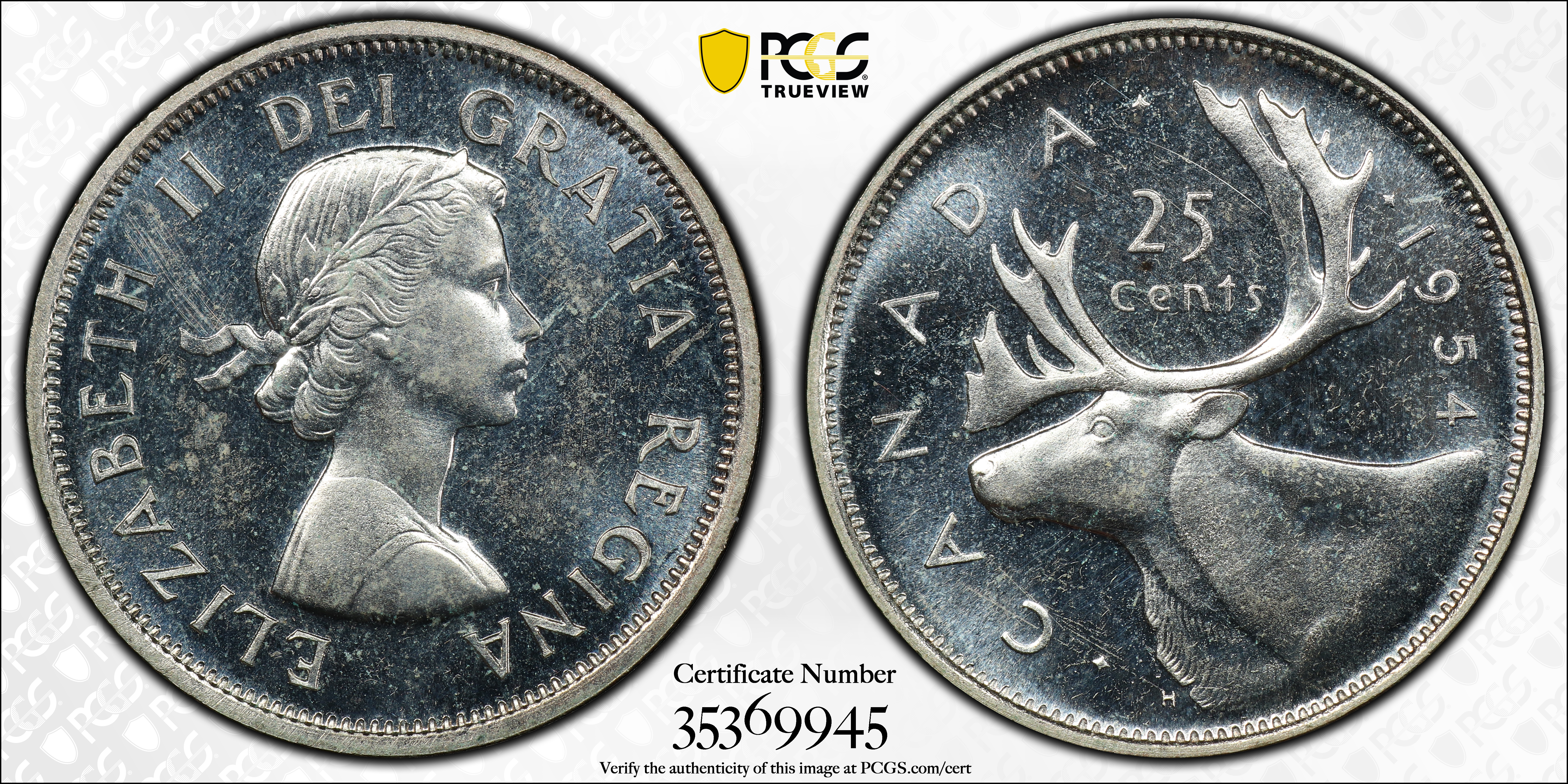 1954 25C PL64 Certification #35369945, PCGS #31966