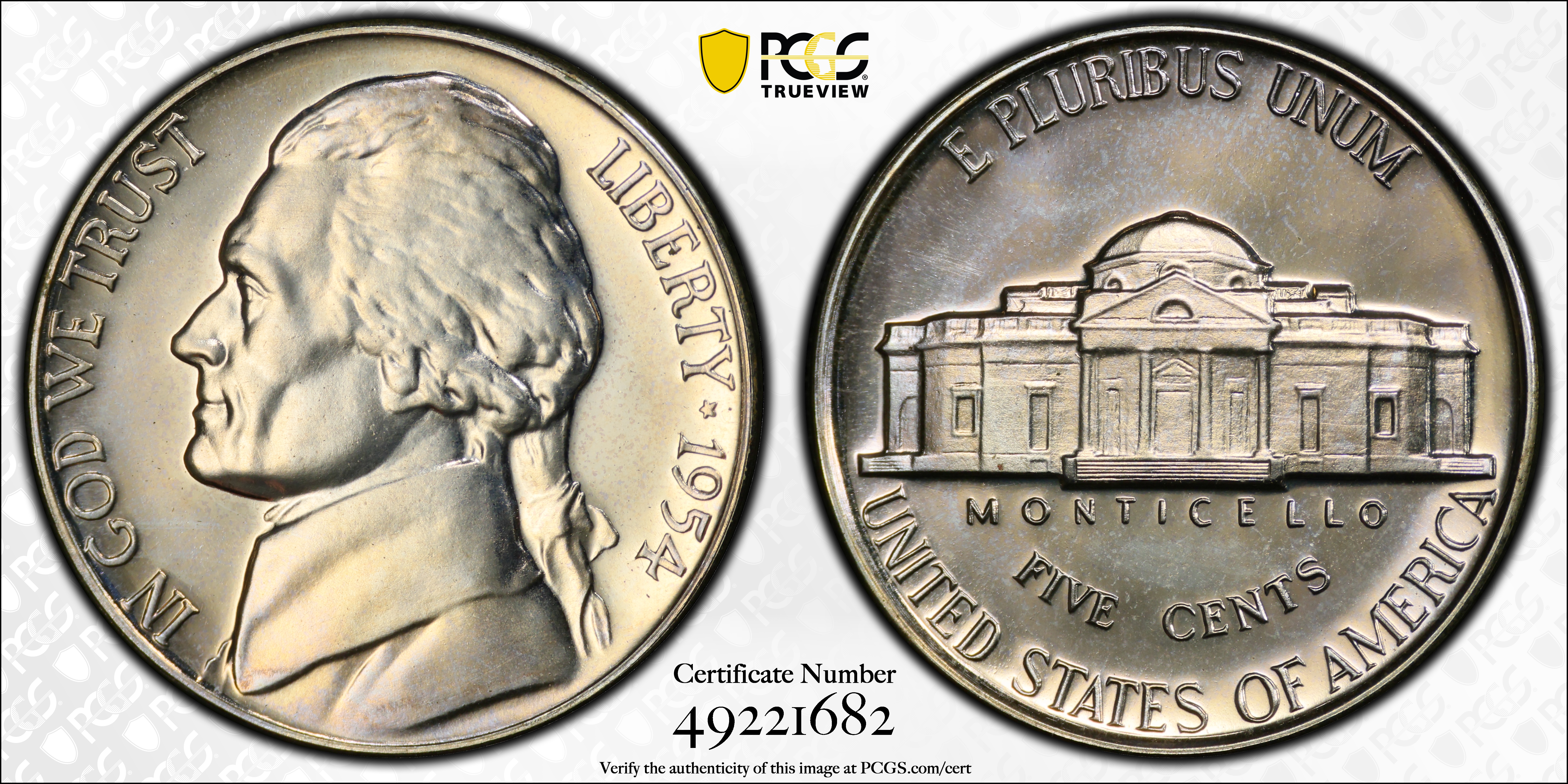 The 1954 Proof Jefferson Nickel has one of the lower mintages from the series. Enough examples were saved that it's easy to find them in nice condition. At PCGS we have graded hundreds of PR68 examples and even several in PR69 condition. So, collectors can choose to be picky if they are looking for a superb example.
