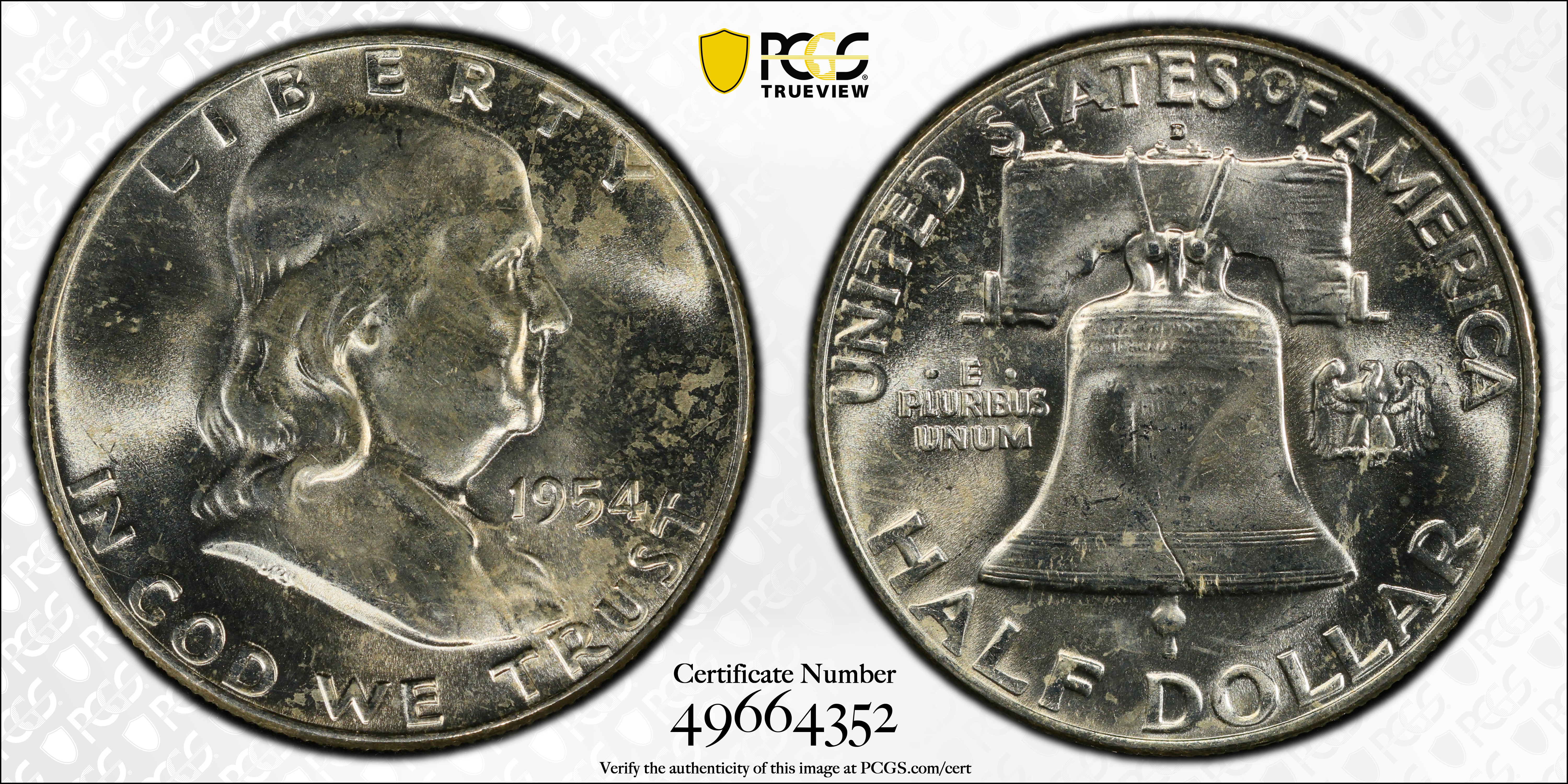 1954-D 50C, FBL MS65FBL Certification #49664352, PCGS #86668