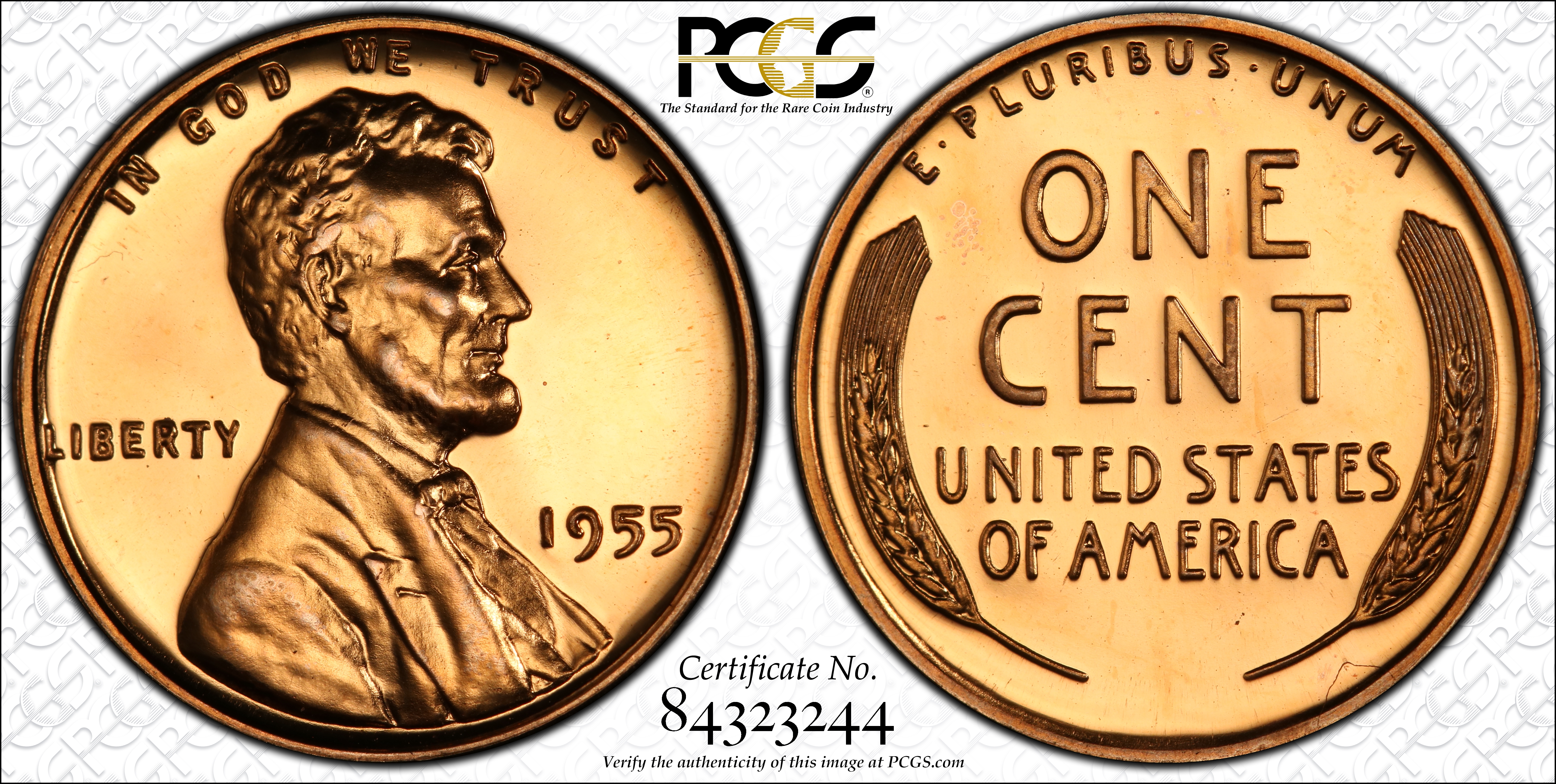 1955 1C, CAM PR66CAM Certification #84323244, PCGS #83374