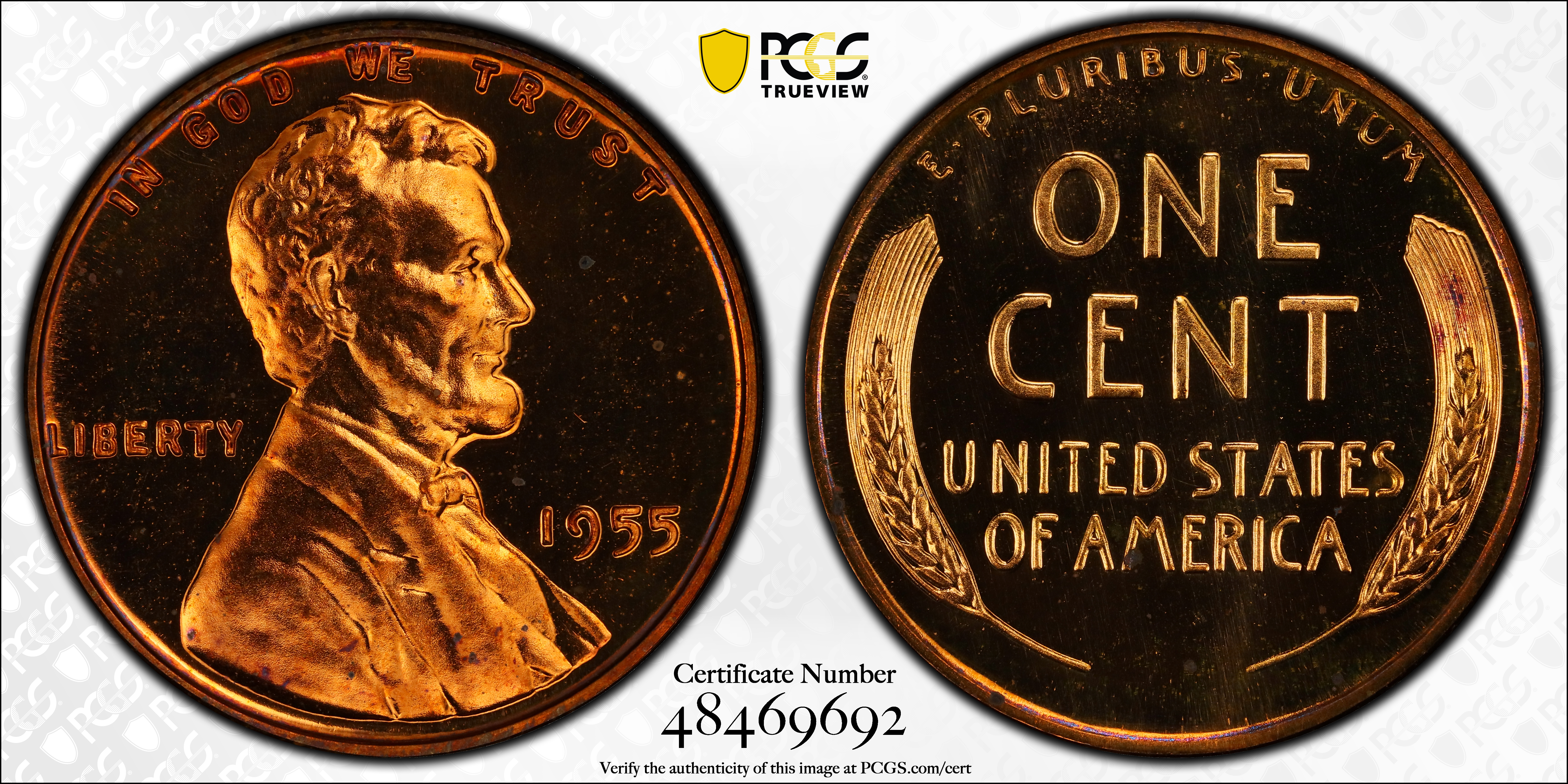 1955 1C, RD PR65RD Certification #48469692, PCGS #3374