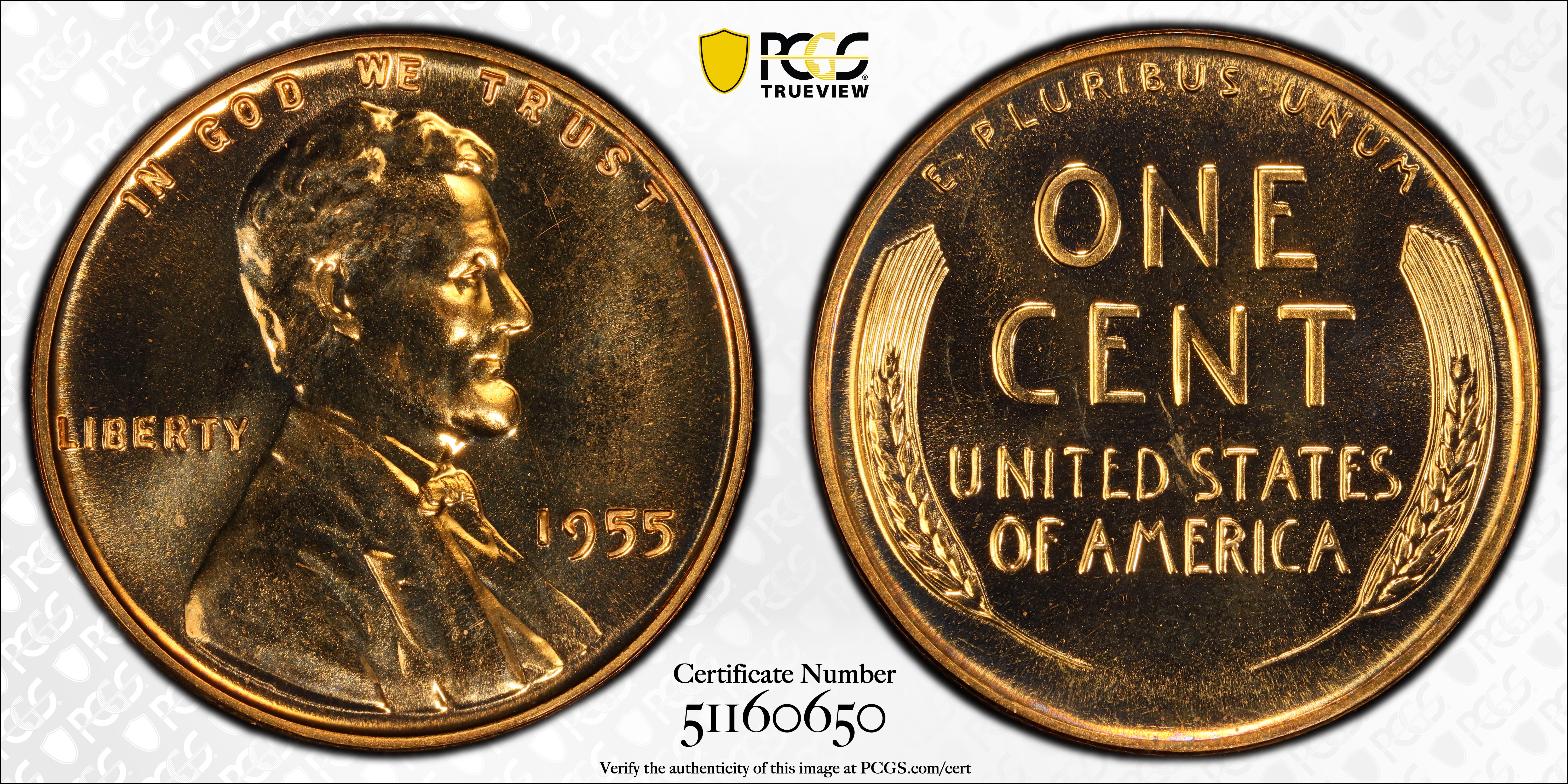 1955 1C, RD PR67RD Certification #51160650, PCGS #3374