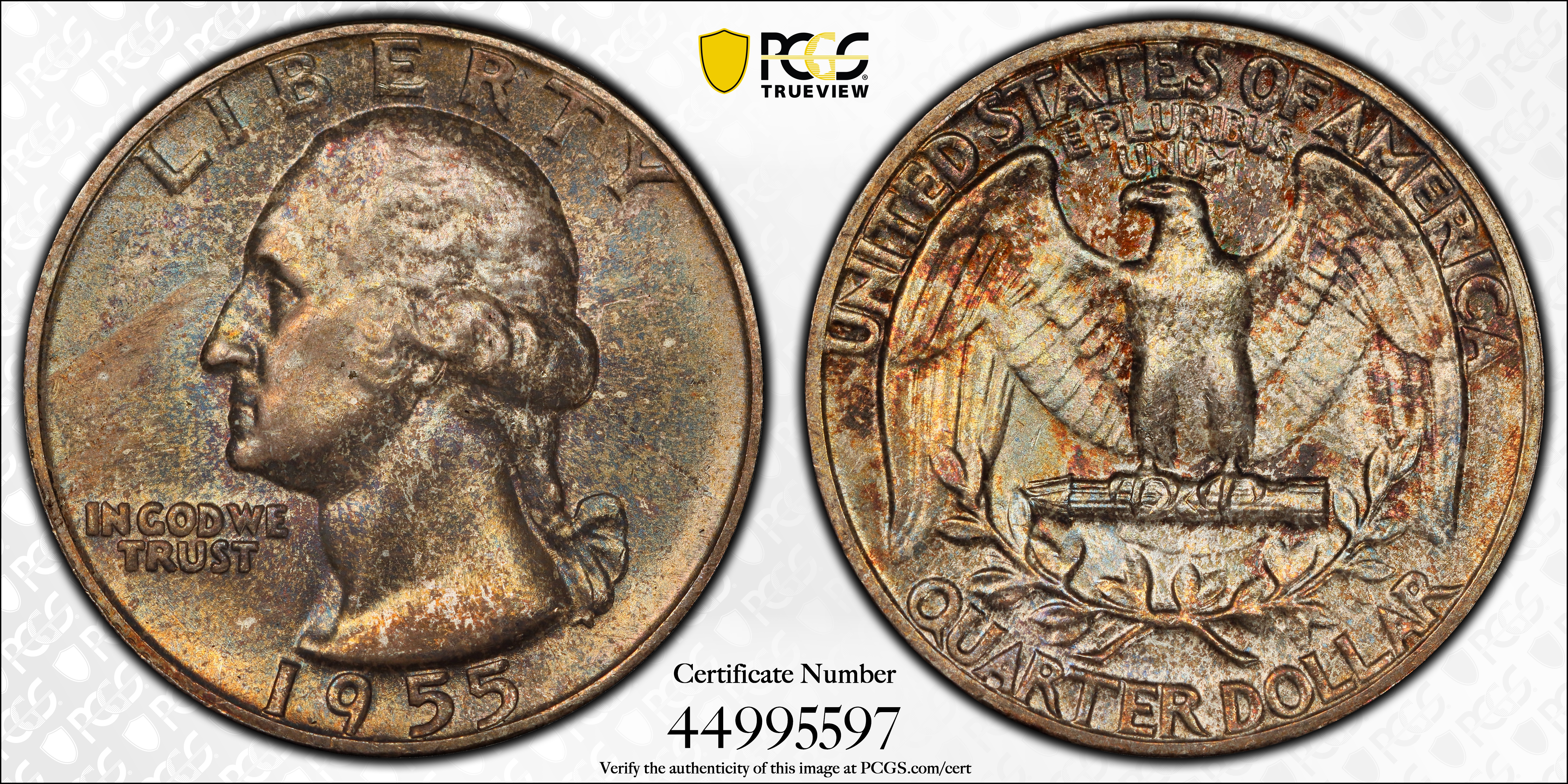 1955 25C MS66 Certification #44995597, PCGS #5858