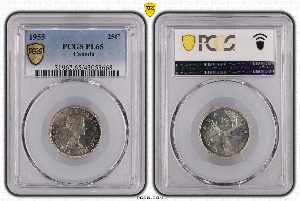 1955 25C PL65 Certification #43053668, PCGS #31967
