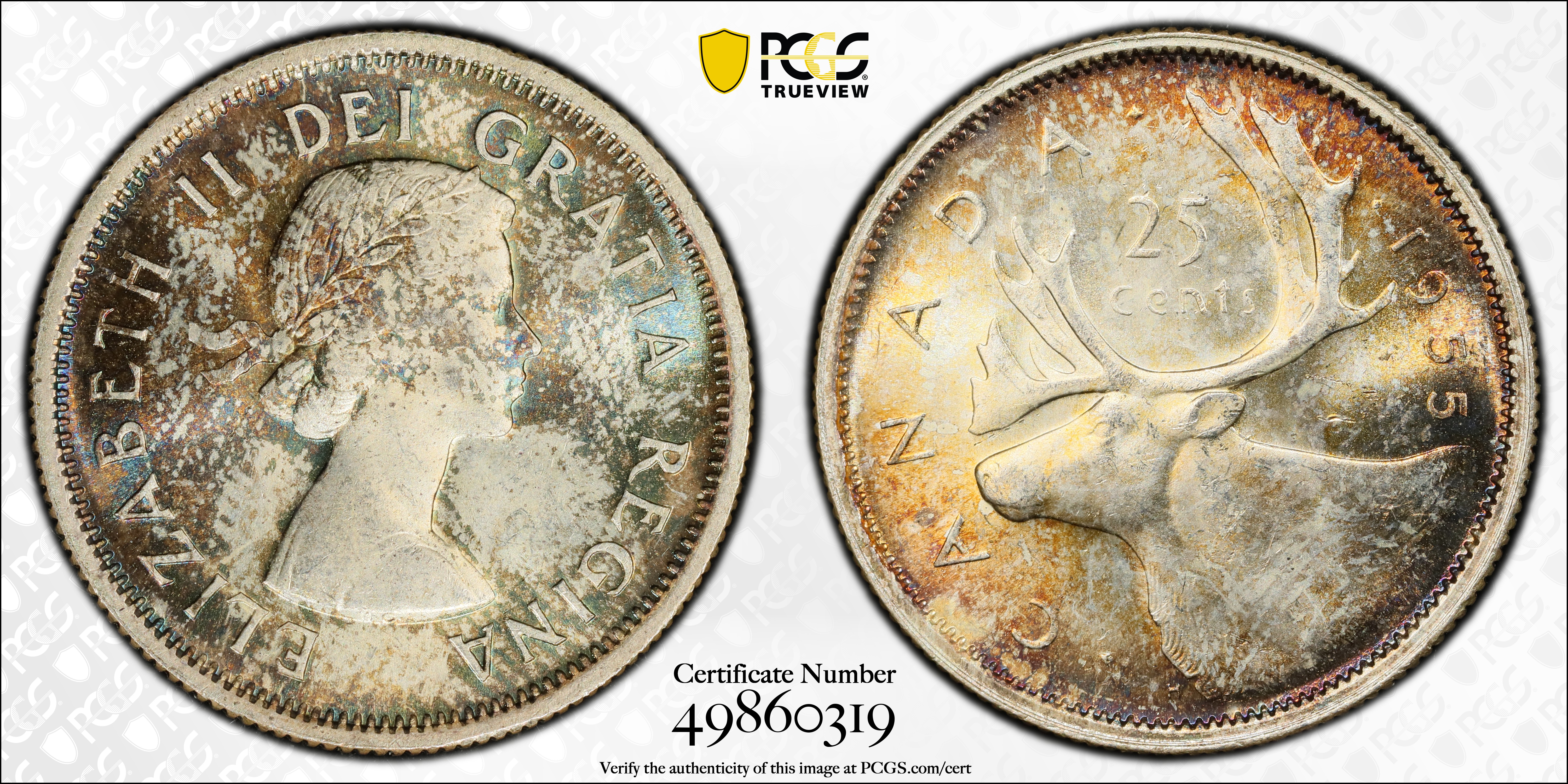 1955 25C MS66 Certification #49860319, PCGS #31907