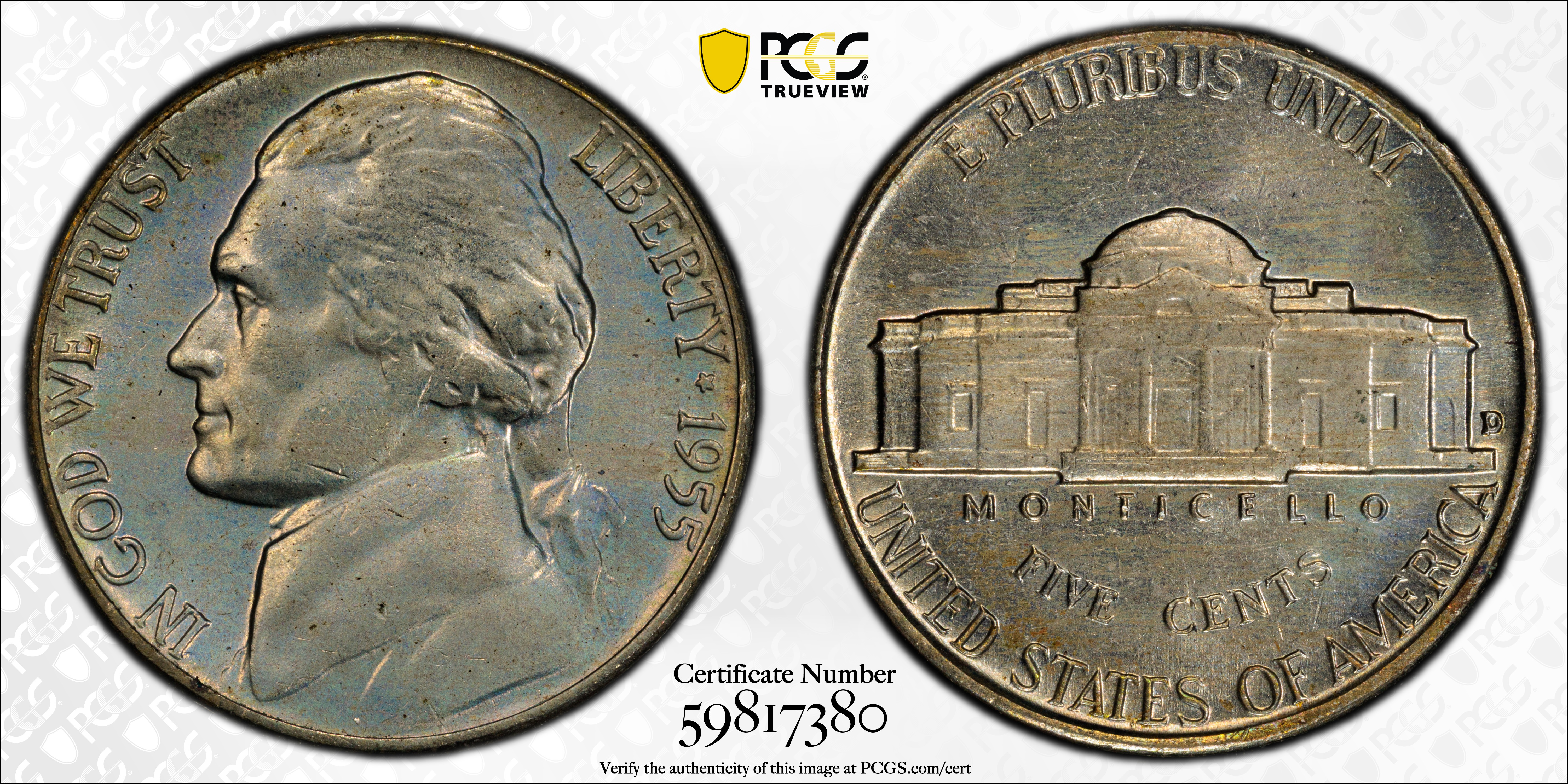 1955-D 5C MS65 Certification #59817380, PCGS #4057