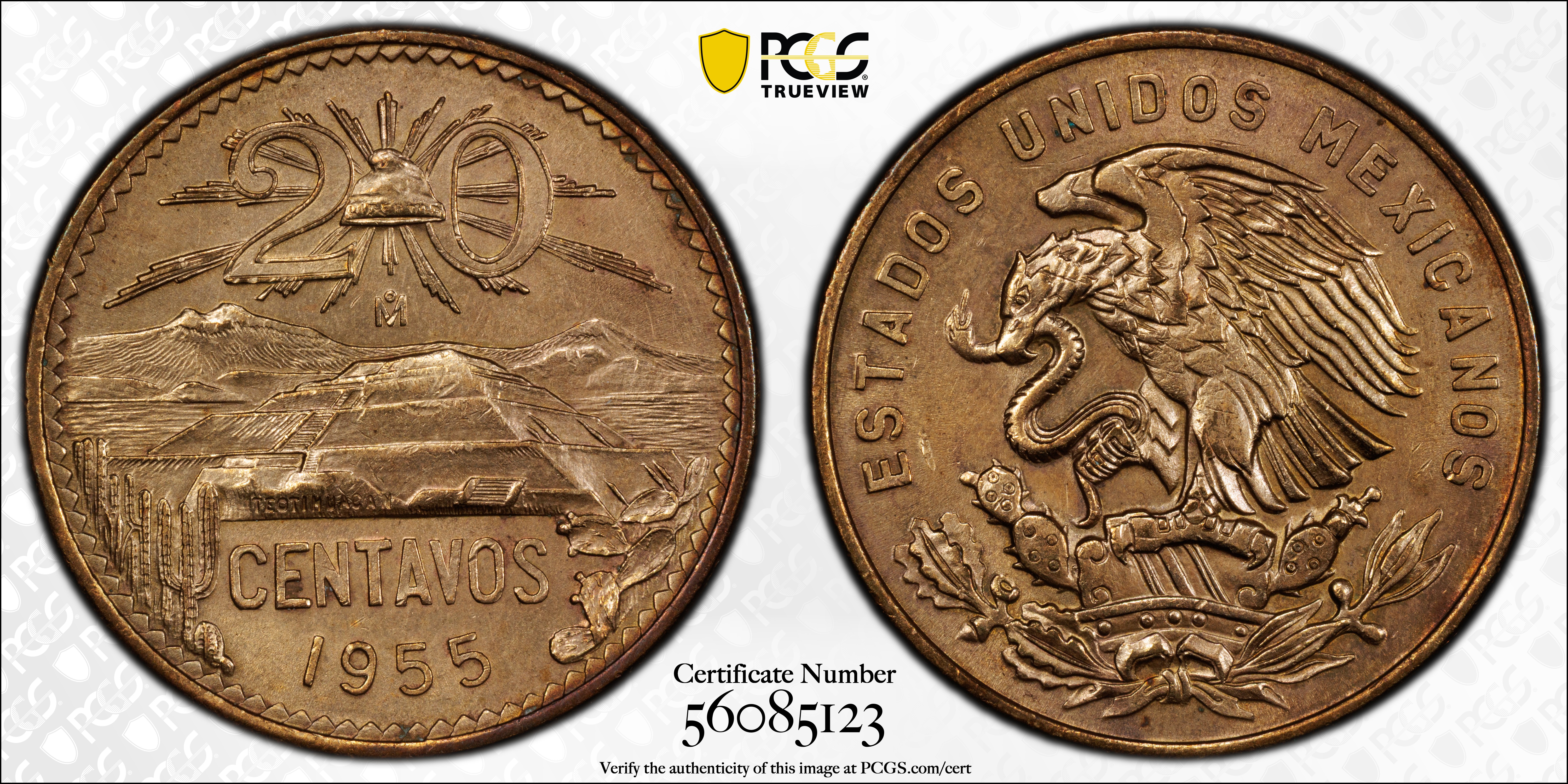 1955-Mo 20C Large Eagle, BN N1BN Certification #56085123, PCGS #525555