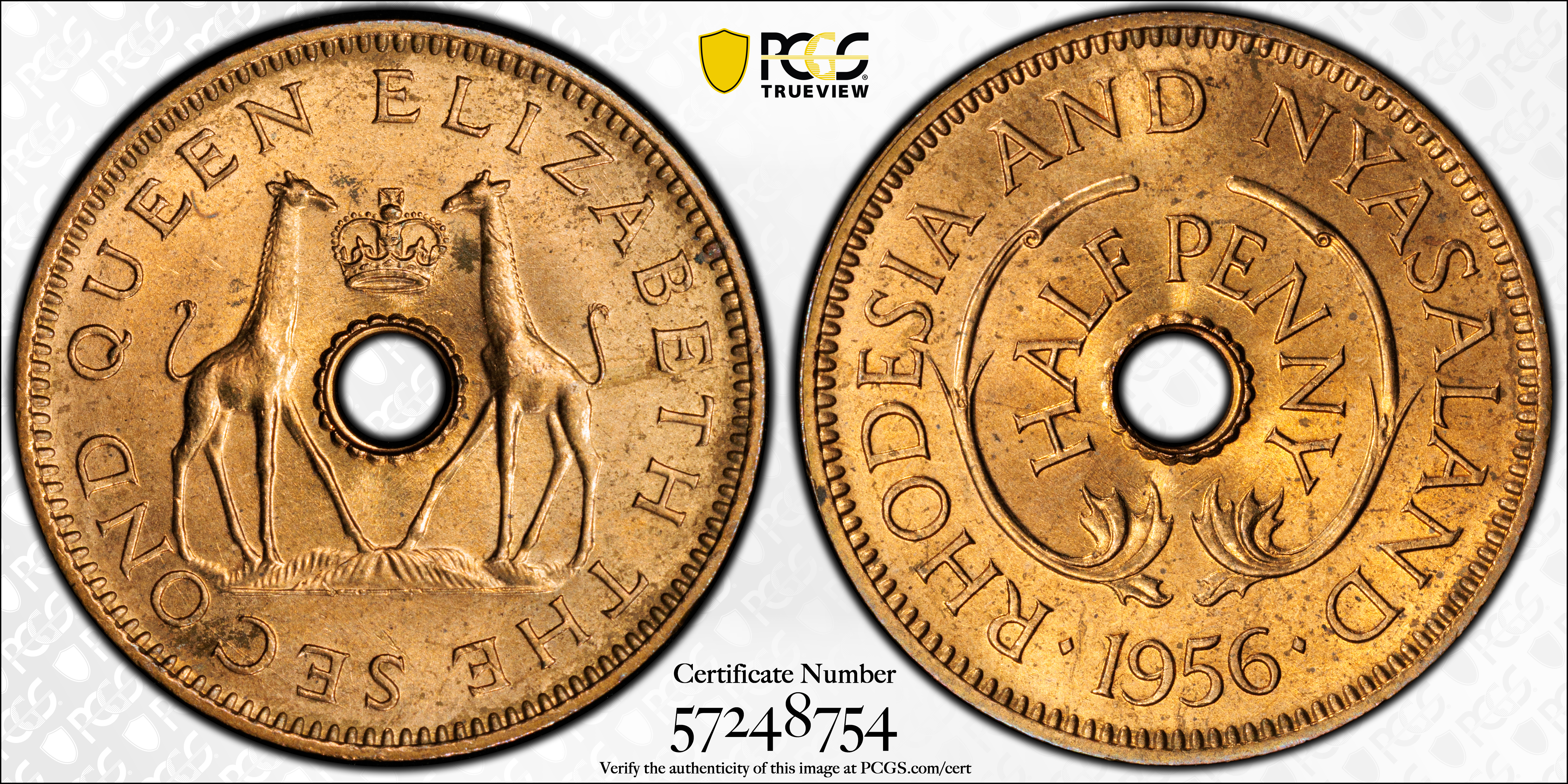 1956 1/2D, RB MS65RB Certification #57248754, PCGS #638705