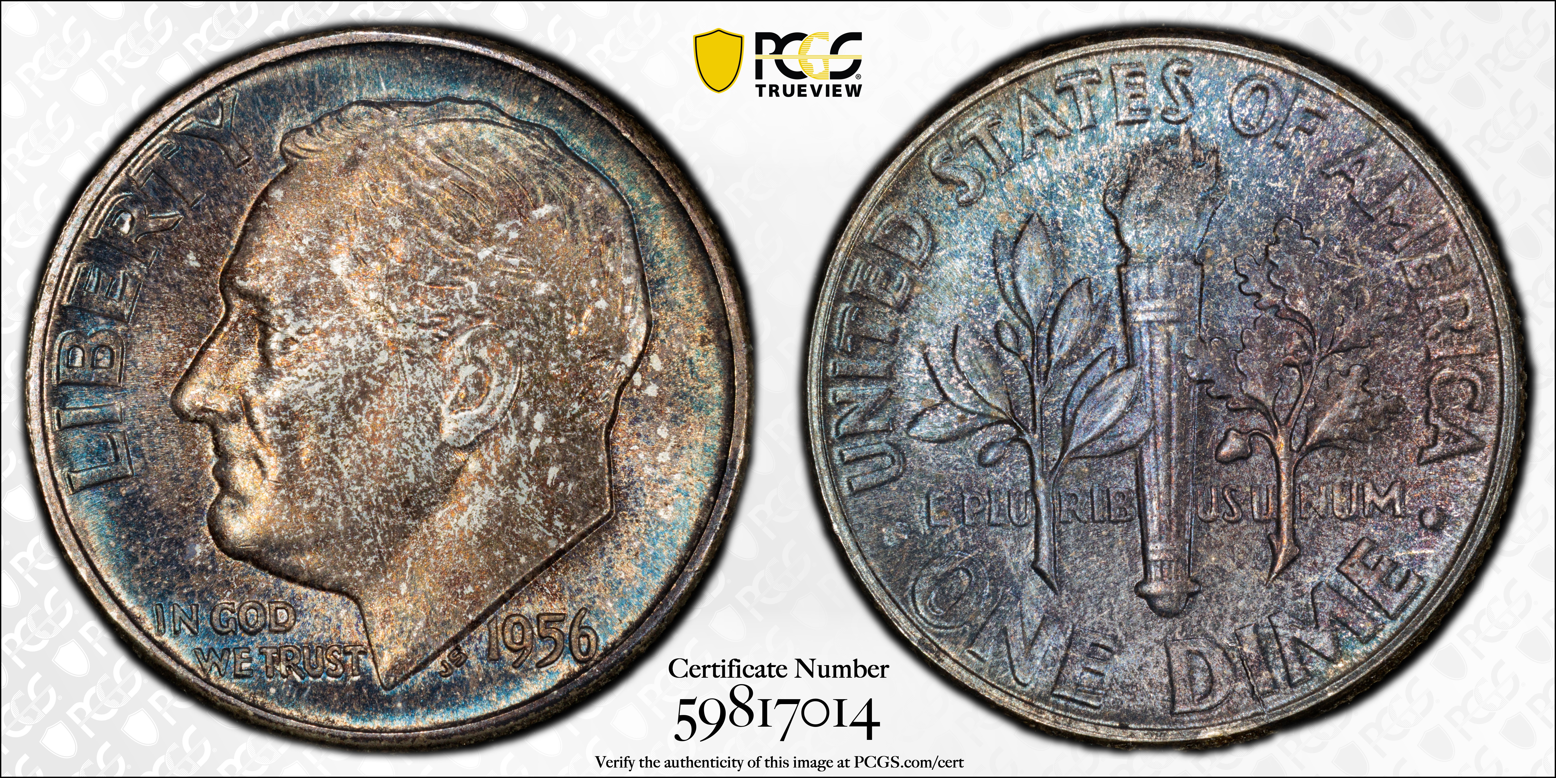 1956 10C, FB MS67FB Certification #59817014, PCGS #85112