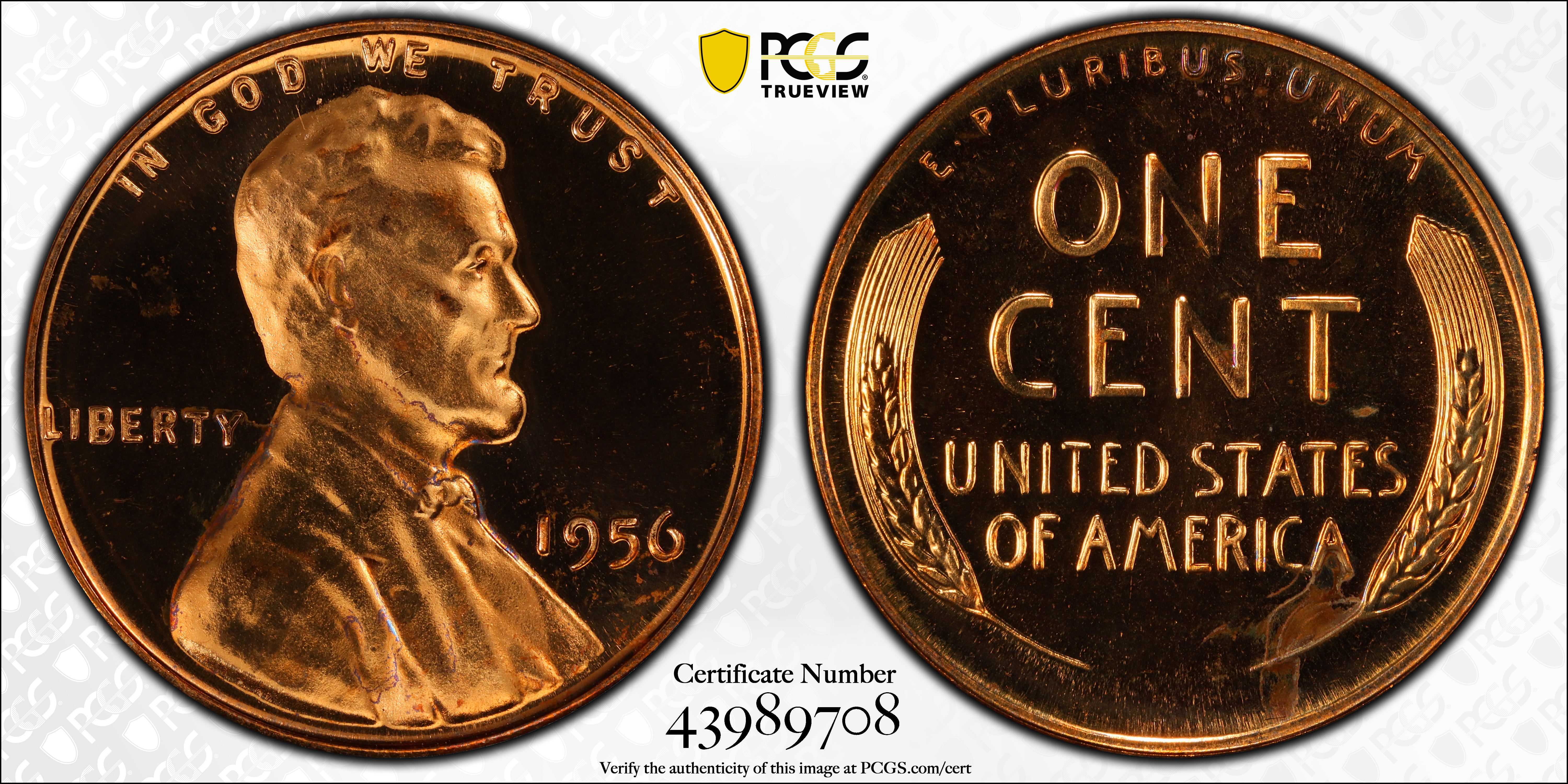 1956 1C, CAM PR66CAM Certification #43989708, PCGS #83377