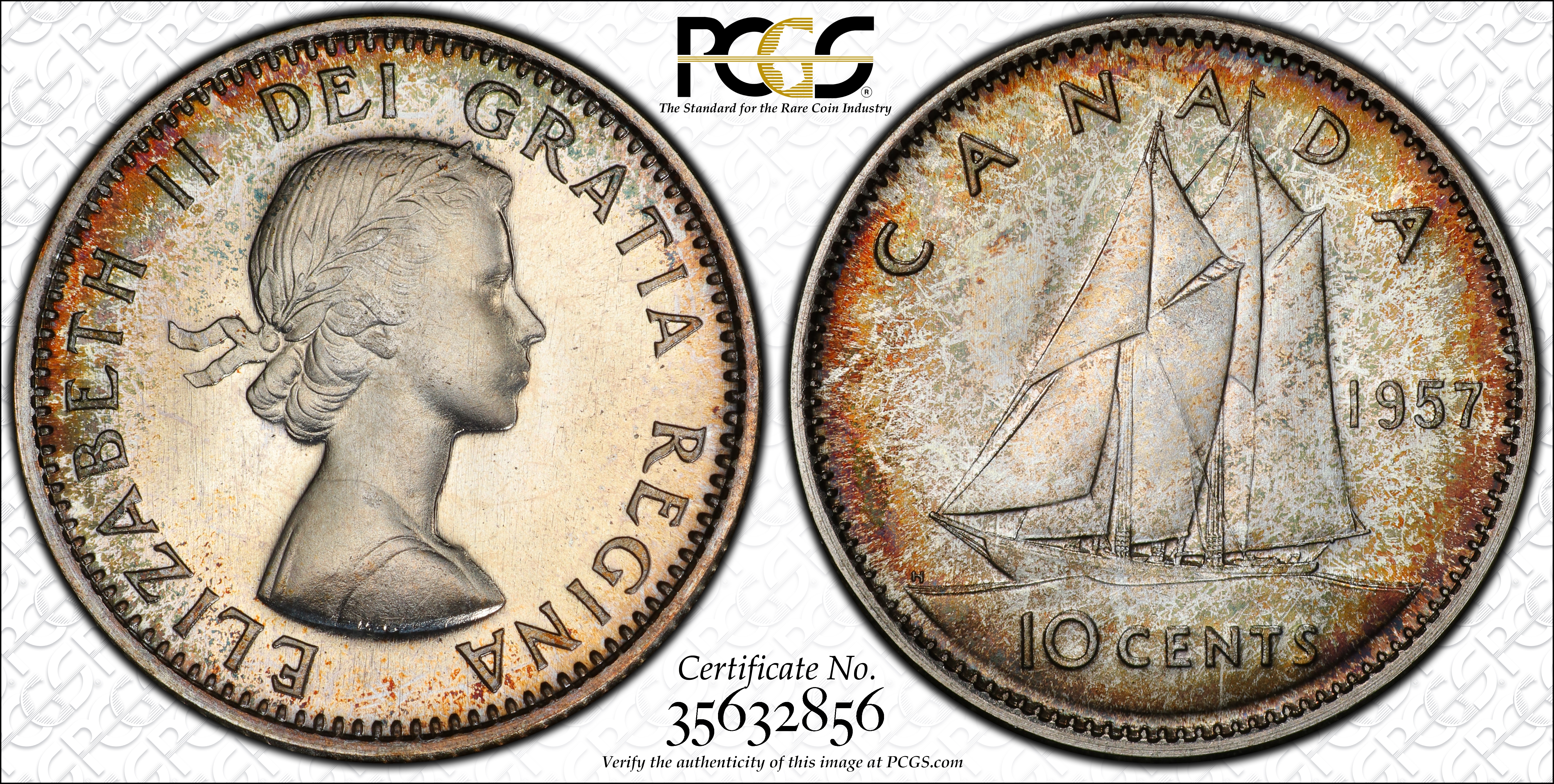 1957 10C PL66 Certification #35632856, PCGS #31605