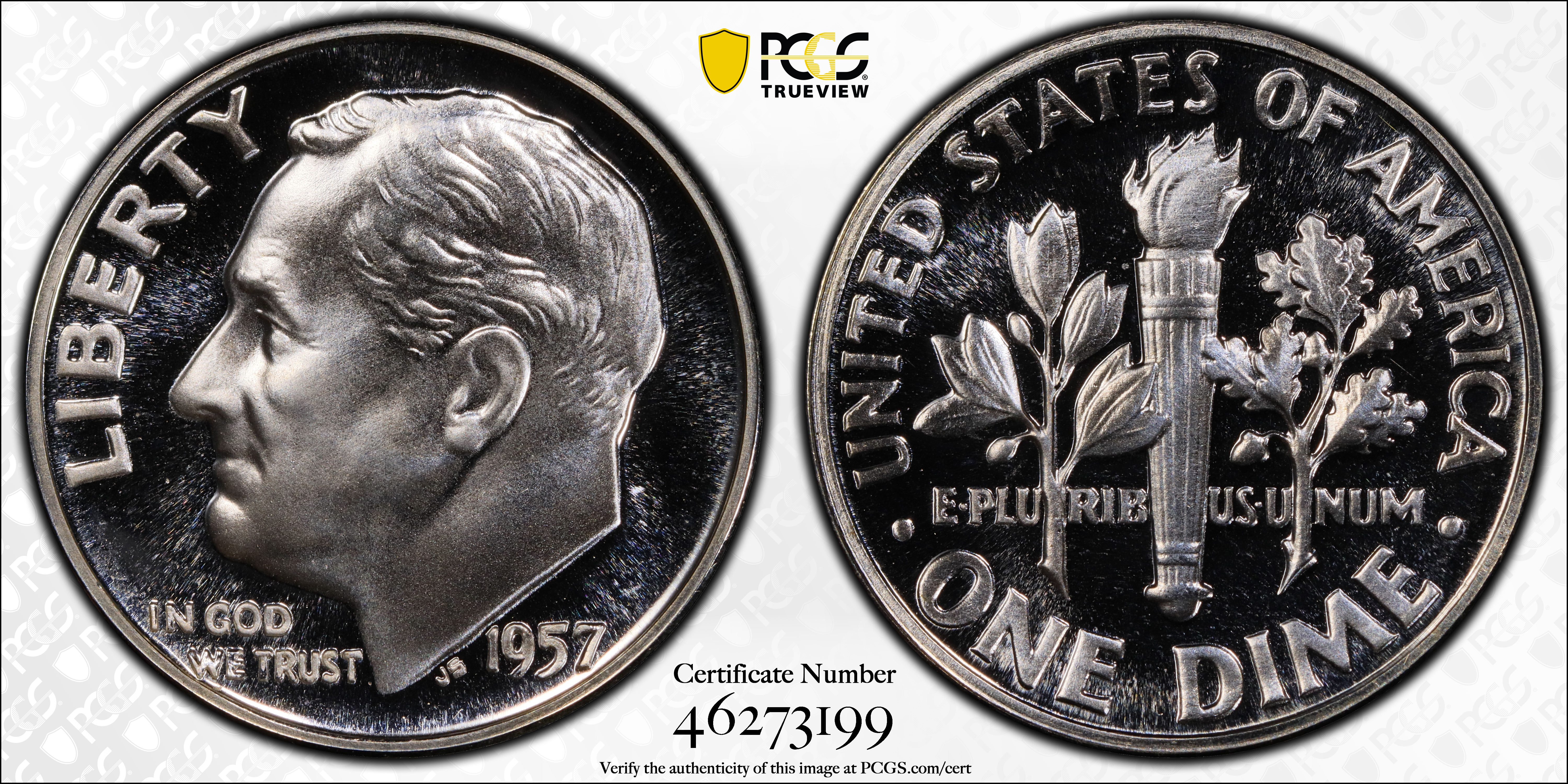 1957 10C PR68 Certification #46273199, PCGS #5232