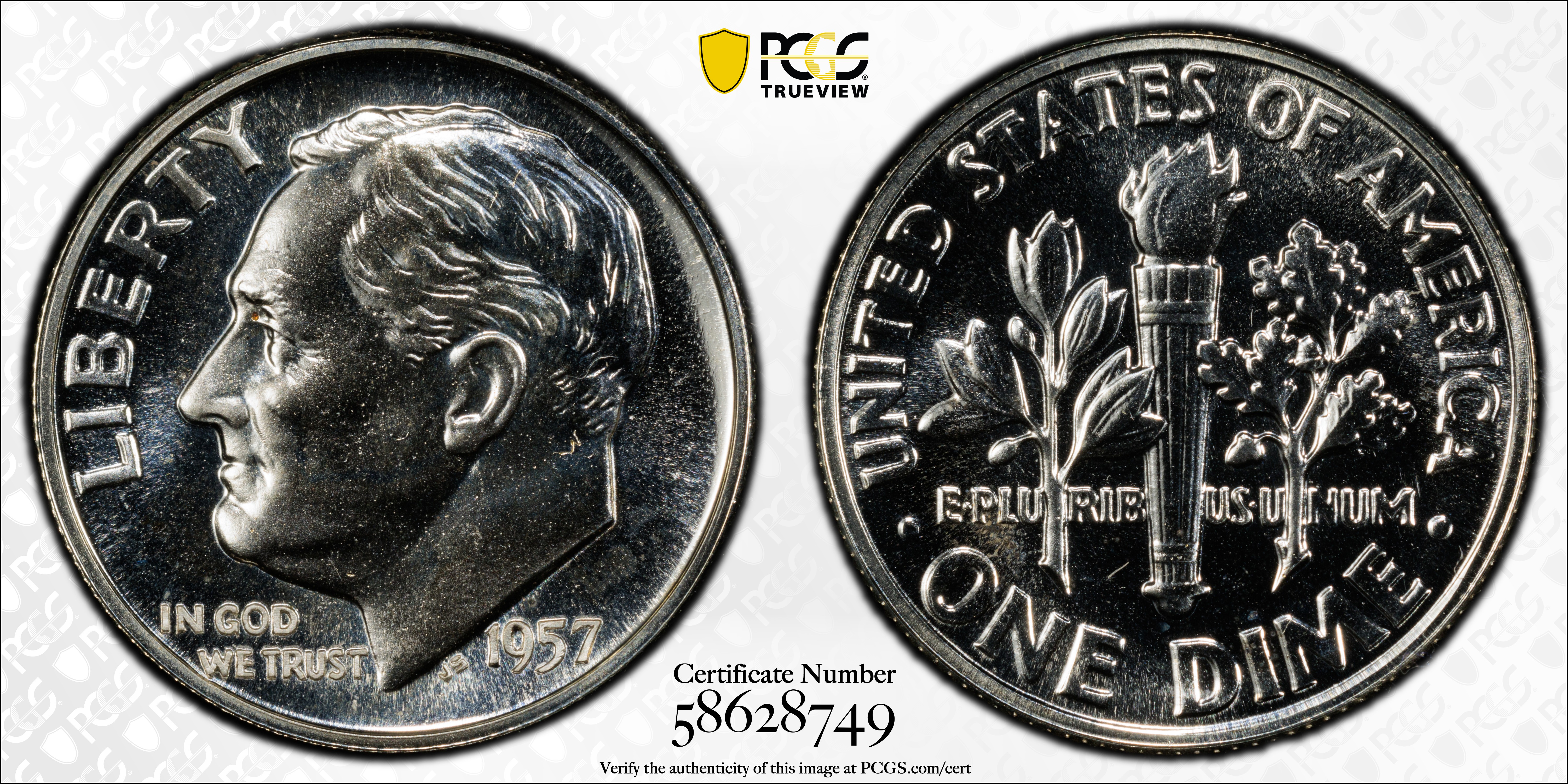 1957 10C PR67 Certification #58628749, PCGS #5232