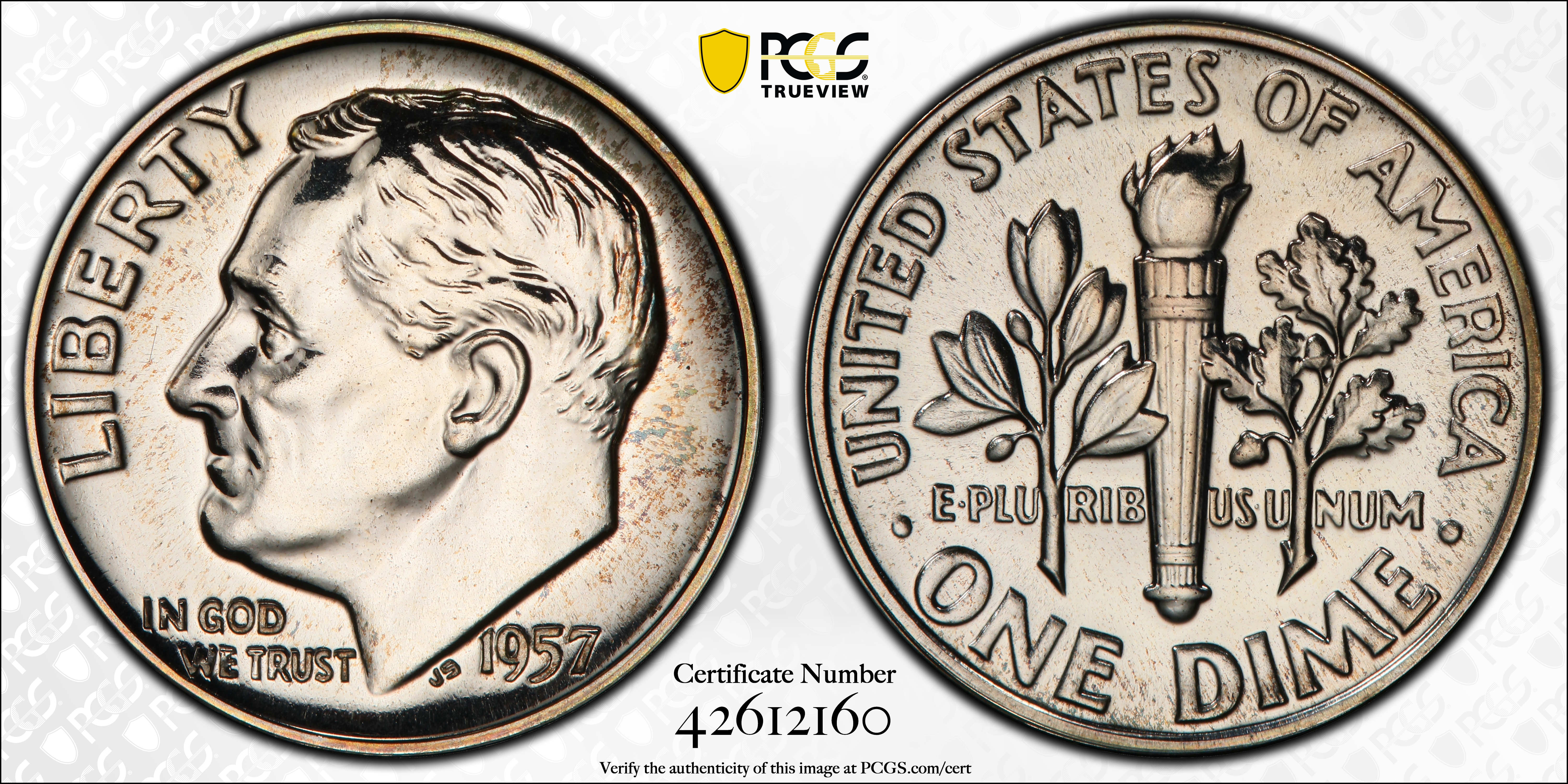 1957 10C PR68 Certification #42612160, PCGS #5232