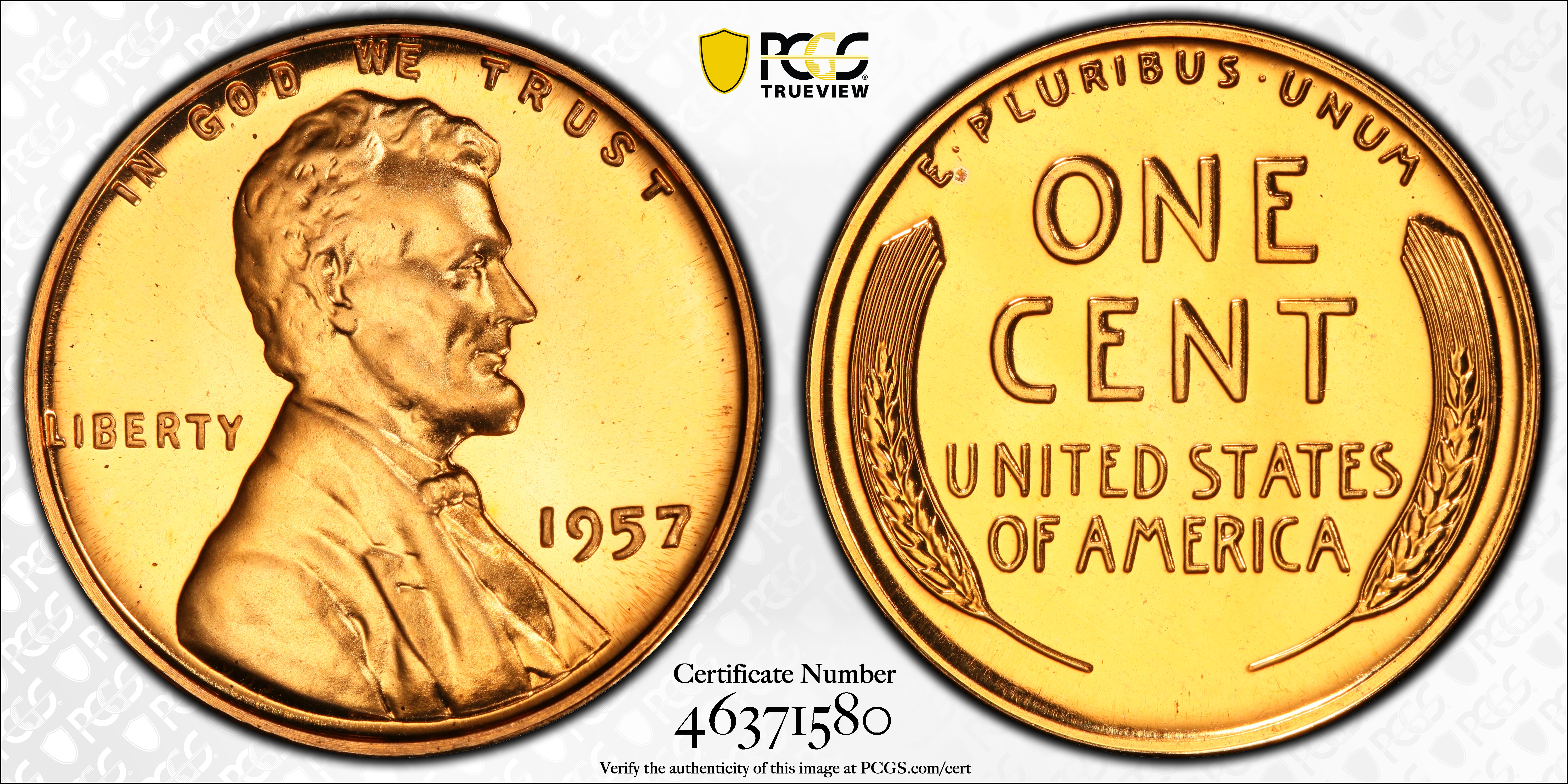 1957 1C, CAM PR67+ CAM Certification #46371580, PCGS #83380