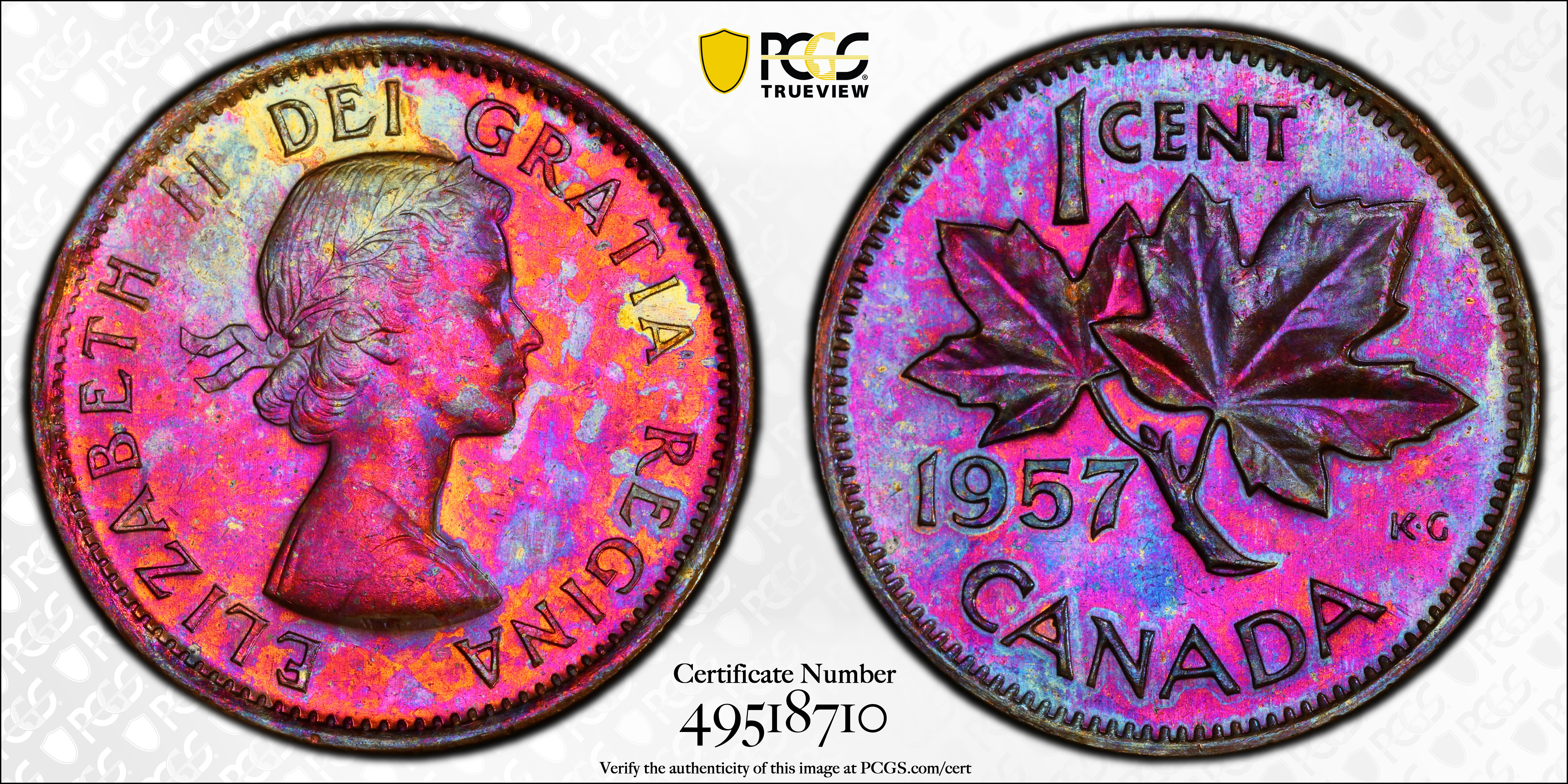 1957 1C, RB MS64RB Certification #49518710, PCGS #30478