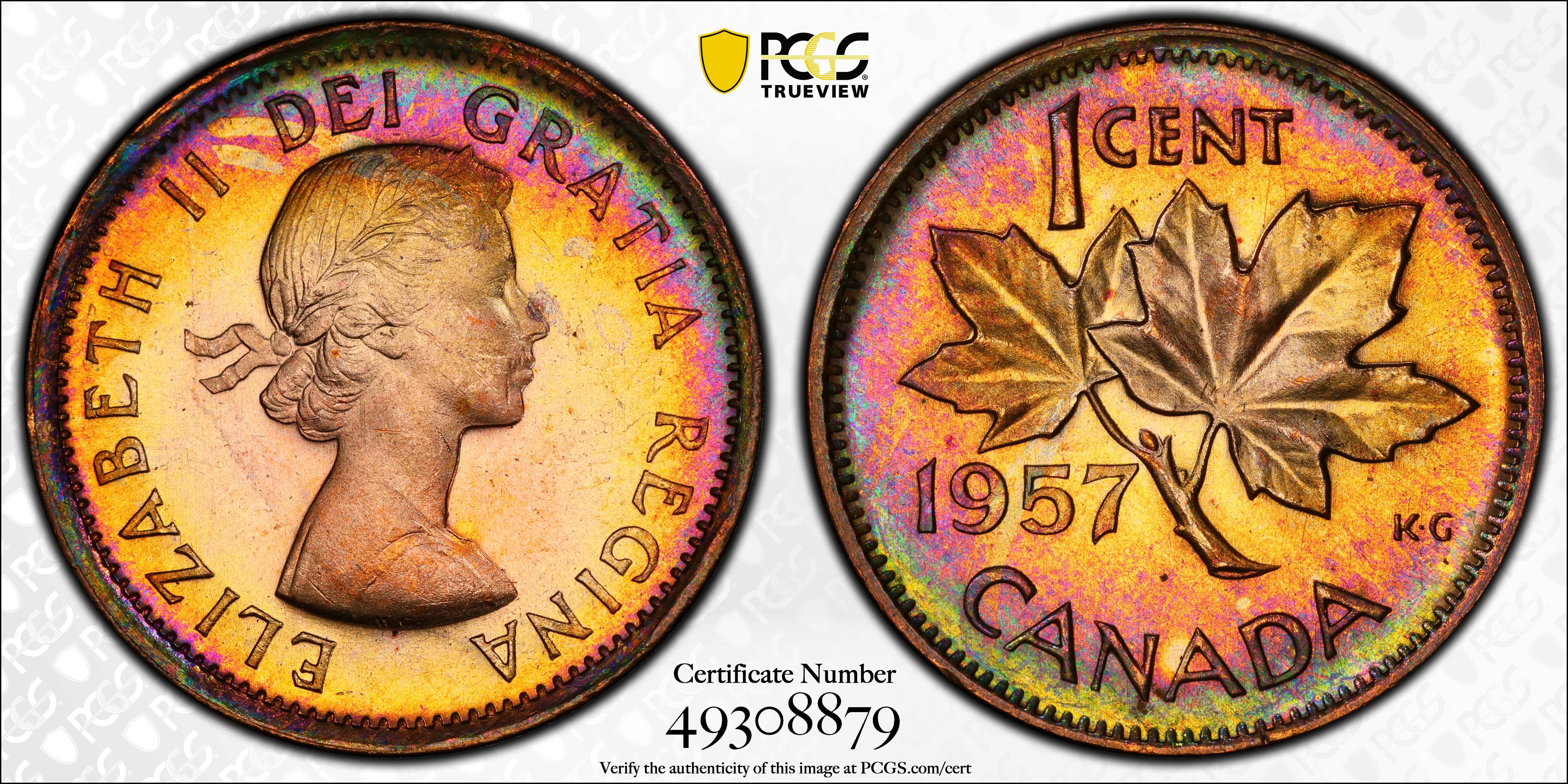 1957 1C, RB MS64RB Certification #49308879, PCGS #30478