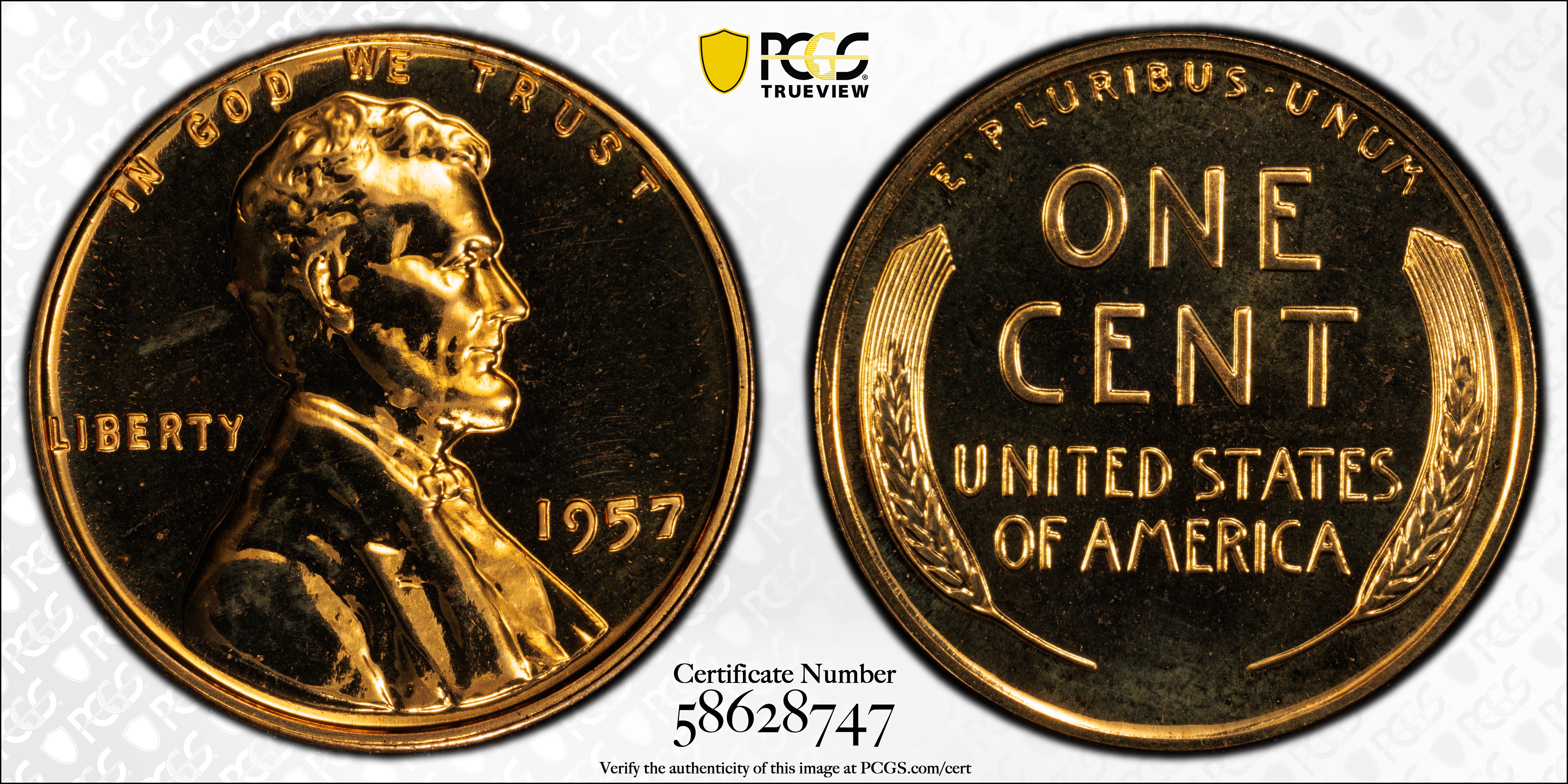1957 1C, RD PR66RD Certification #58628747, PCGS #3380
