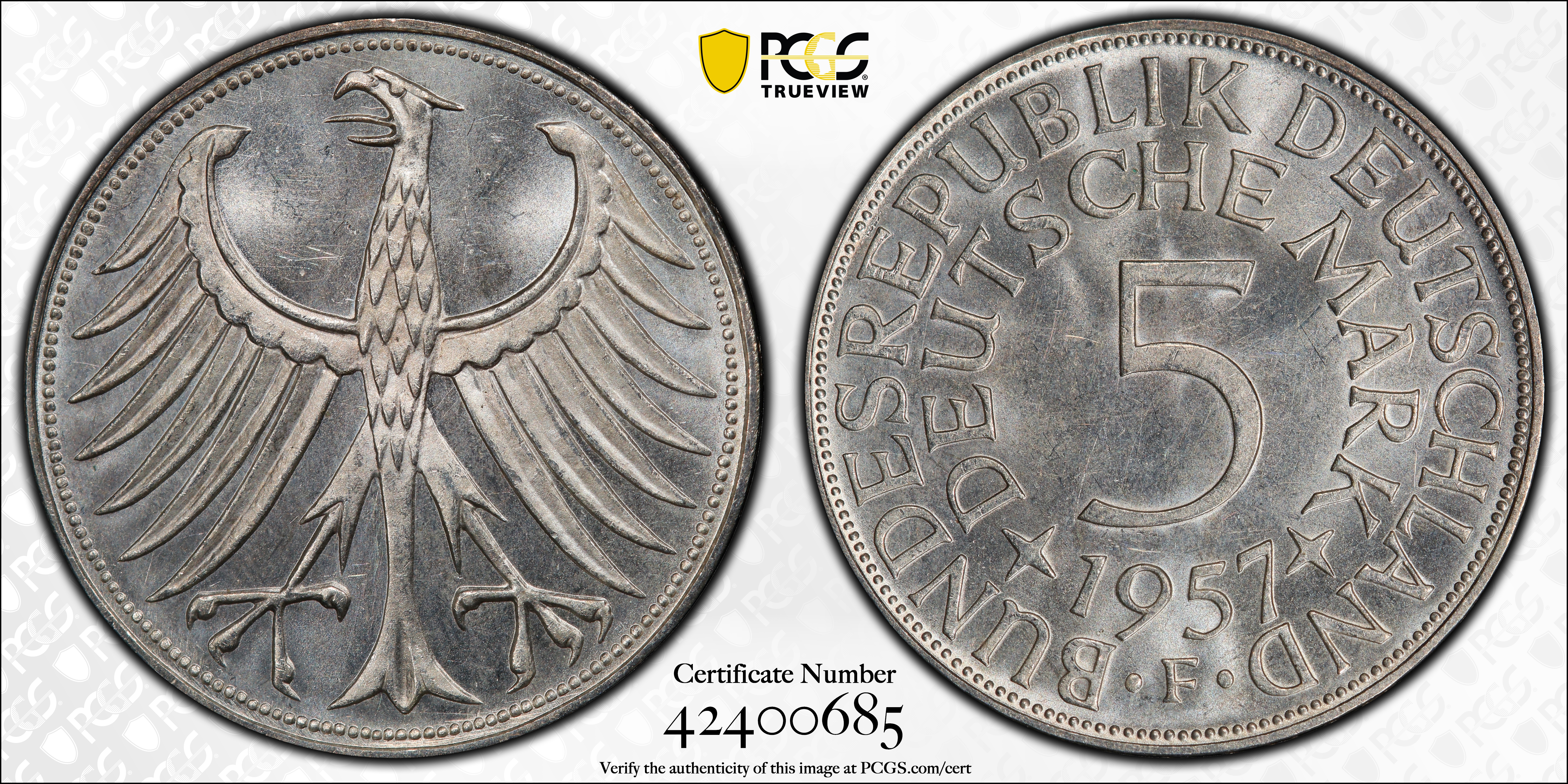 1957-F 5 Mk J-387 MS64 Certification #42400685, PCGS #316152
